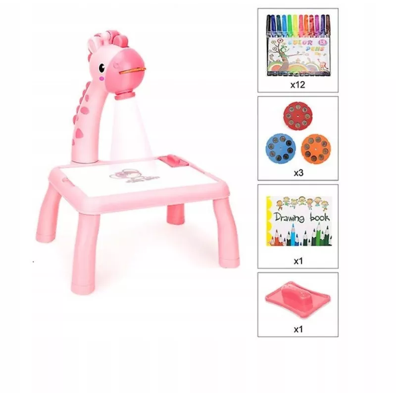 Oprócz walorów edukacyjnych, projektor dostarcza również muzykalnych doznań, co z pewnością przypadnie do gustu małym miłośnikom dźwięków. Odcienie różu nadają mu uroczego wyglądu, który zachwyci każde dziecko. Wybierz PROJEKTOR DO RYSOWANIA NÓŻKI ŻYRAFA MUZYKA 2021-6AR i pozwól, aby Twoja pociecha odkrywała świat kreatywności w radosny sposób! Chwyć za kredki i projektuj z nami!