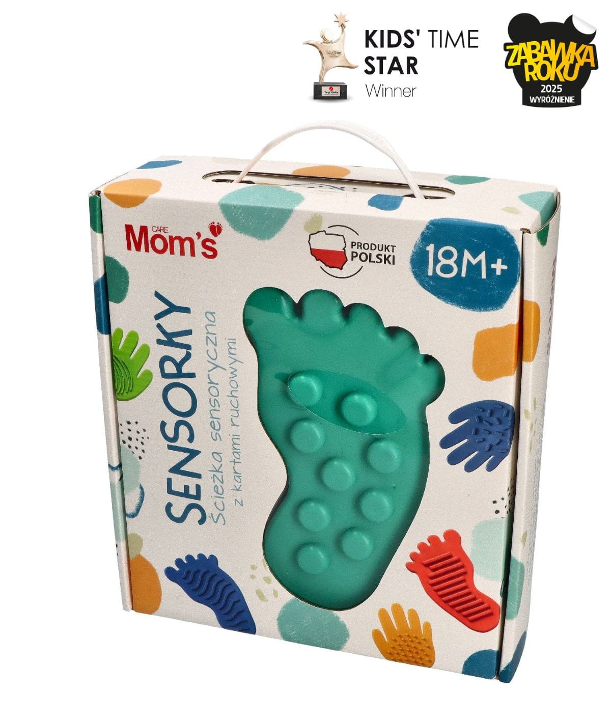 Ścieżka sensoryczna Sensorky to zestaw składający się z 8 elementów: 4 stóp i 4 dłoni, z których każda posiada unikalną strukturę sensoryczną. Zestaw zawiera również talie kart ruchowych, które inspirują do różnorodnych ćwiczeń i zabaw ruchowych. Pomaga rozwijać zmysł dotyku, poprawia koordynację i równowagę, a także wzmacnia świadomość ciała.