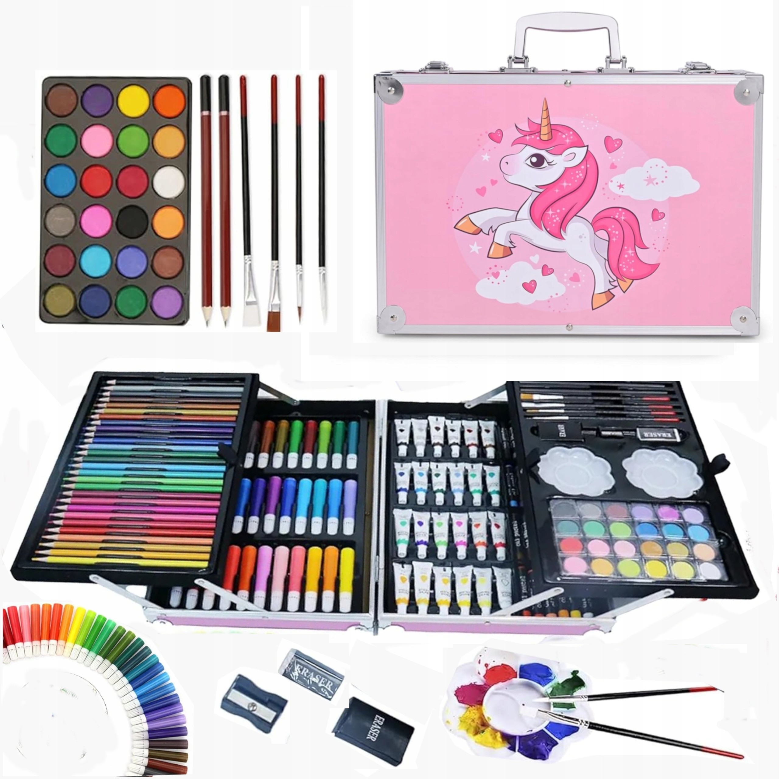Zestaw artystyczny dla dzieci 145 elementów – walizka z kredkami, farbami i pisakami