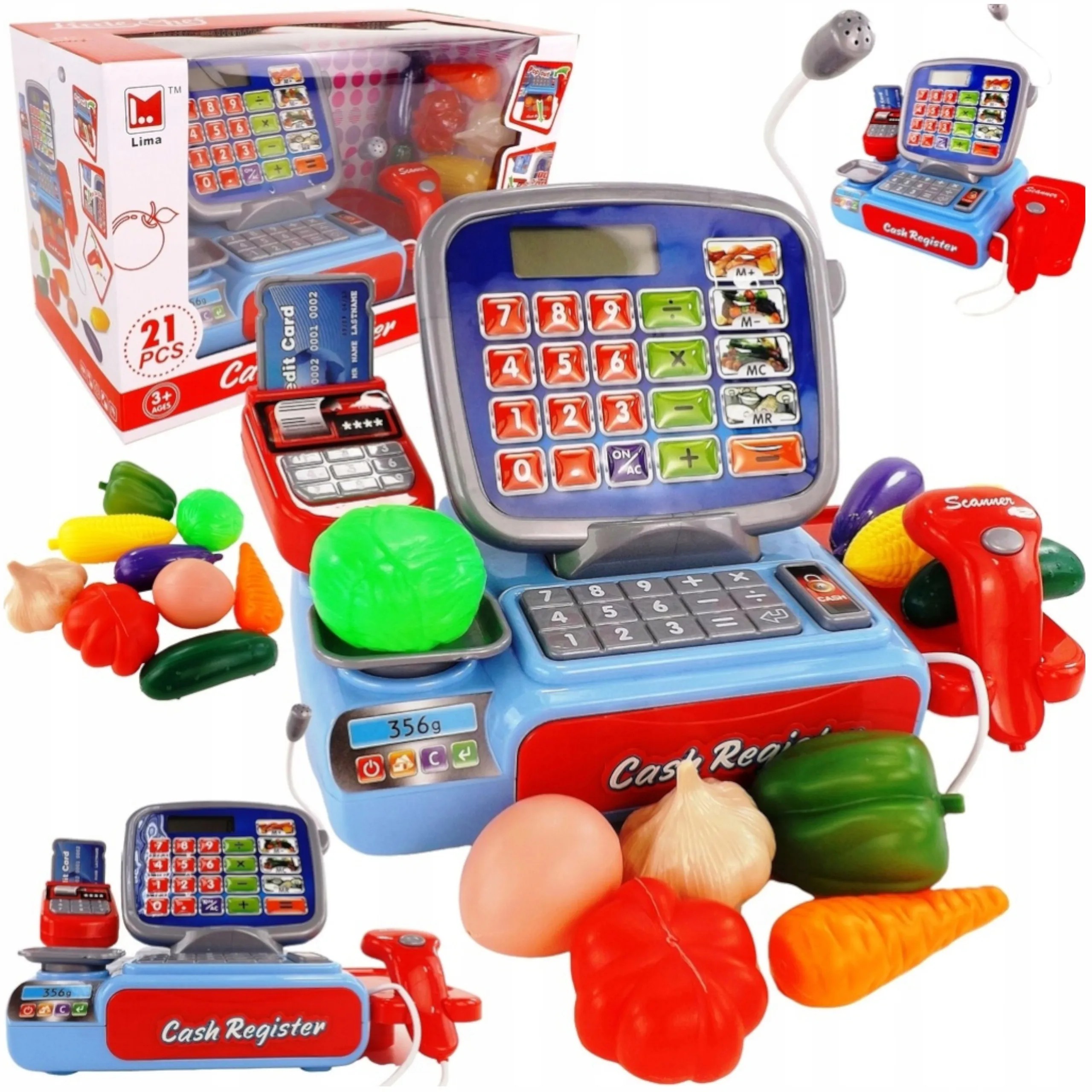 Interaktywna kasa fiskalna, wyposażona w działający kalkulator LCD, otwieraną szufladę na pieniądze, terminal i skaner z dźwiękiem "bip". Zabawka wspiera naukę liczenia, rozpoznawania wartości pieniądza oraz symulację płatności kartą i gotówką. Wykonana z trwałych, nietoksycznych materiałów, bez ostrych krawędzi, zapewniając bezpieczną zabawę.