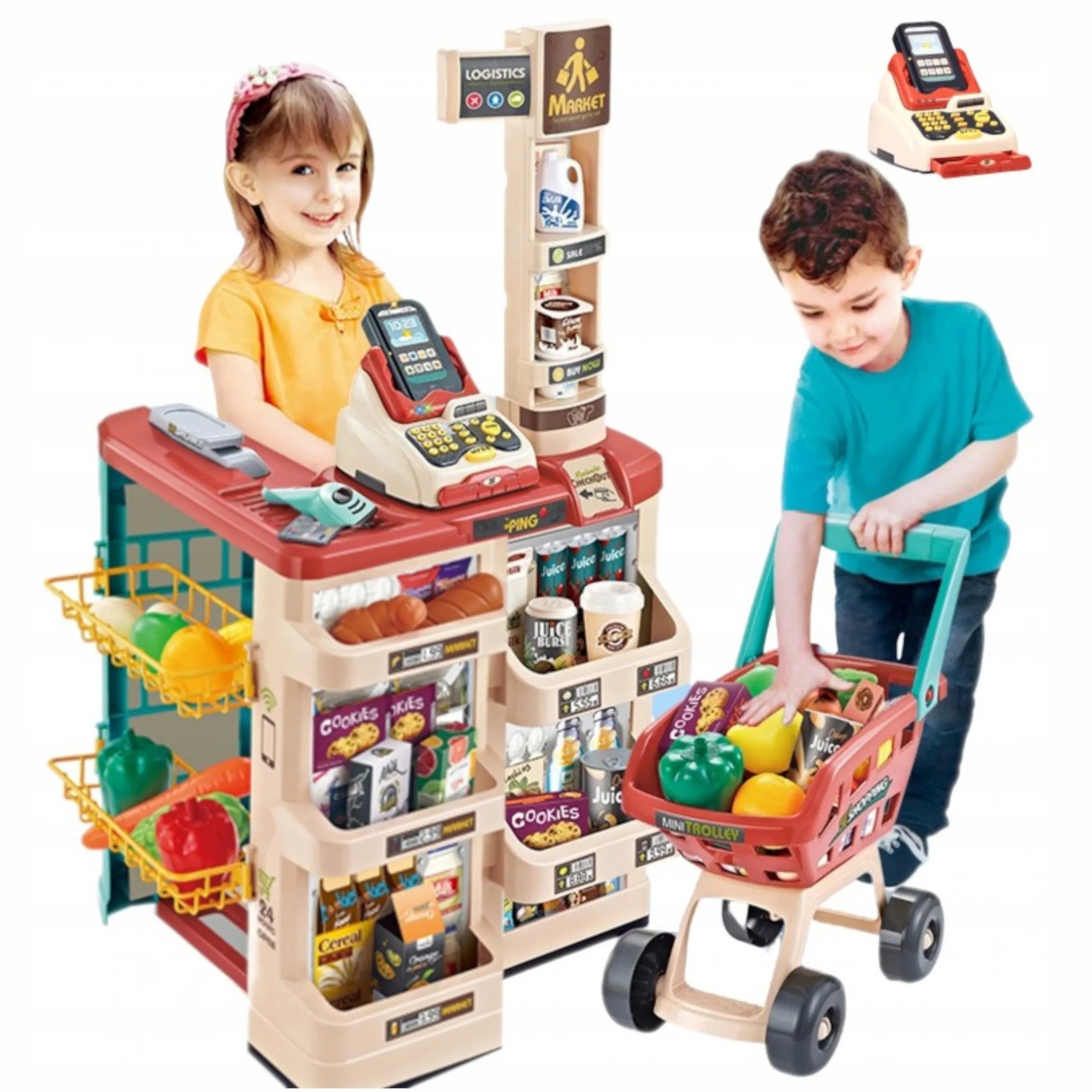 Zestaw umożliwia zabawę w sklep spożywczy i zawiera kasę fiskalną, skaner, wózek na zakupy oraz różnorodne produkty. Zabawa rozwija zdolności manualne, matematyczne i społeczne dziecka, a realistyczne akcesoria wprowadzają elementy edukacyjne i świetną zabawę.
