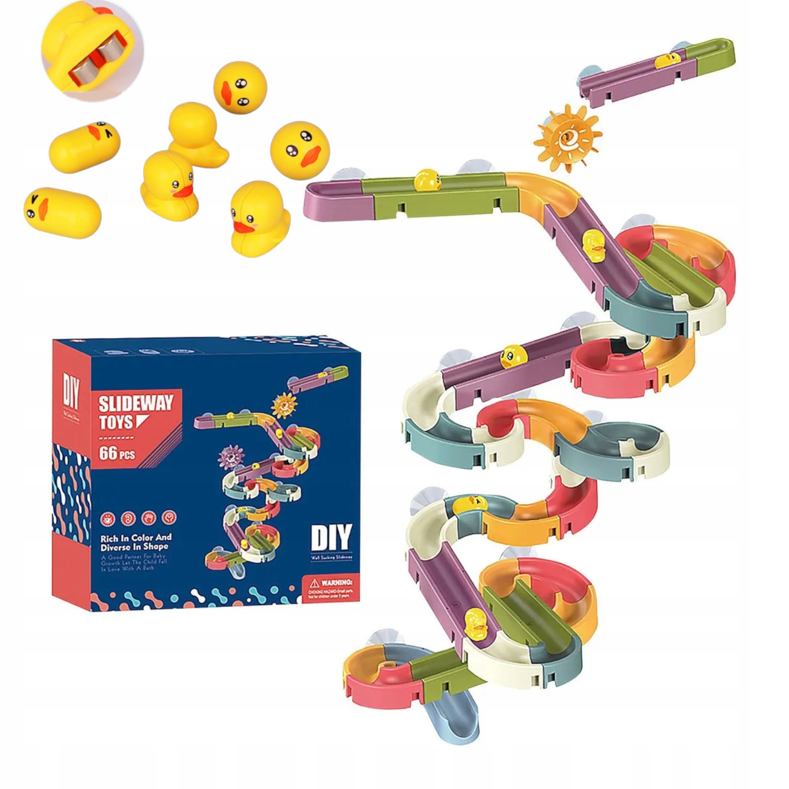 Tor wodny do kąpieli dla dzieci z kaczuszkami i sitkiem - zjeżdżalnia 66 el. z kołowrotkami i przyssawkami