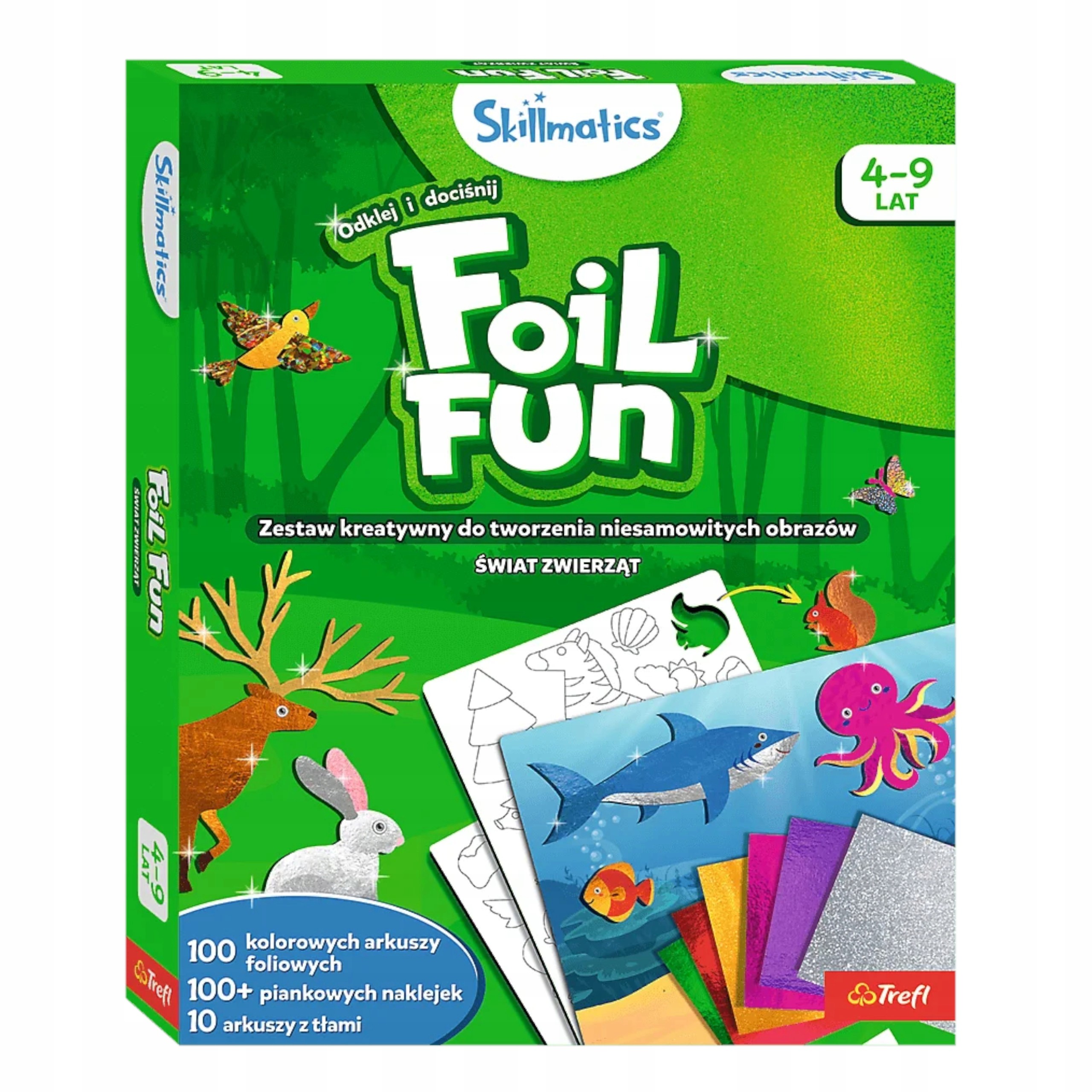 Skillmatics Foil Fun – Świat Zwierząt to kreatywny zestaw dla dzieci, pozwalający tworzyć błyszczące obrazki zwierząt bez użycia kleju czy farb. Zabawa rozwija motorykę, kreatywność i koordynację ręka‑oko, a jednocześnie jest czysta i bezpieczna. Idealny do domu i w podróży.