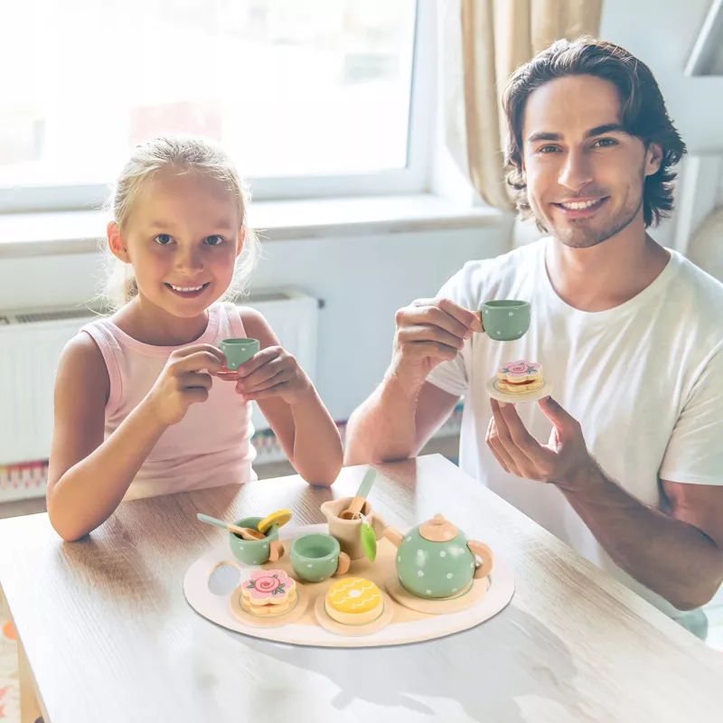 To idealny sposób na wspólne chwile z rodzicem lub dziadkami, rozwijanie empatii i naukę zachowania przy stole. Zabawa w „herbatkę” to klasyka, która nigdy się nie nudzi!