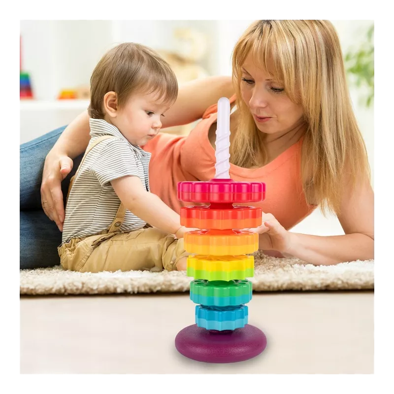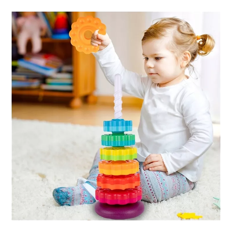 Tęczowa wieża sensoryczna to idealny prezent dla rocznego dziecka – łączy naukę, ruch, obserwację i radość. Jest piękna, bezpieczna i trwała, a do tego zachwyca zarówno chłopców, jak i dziewczynki.