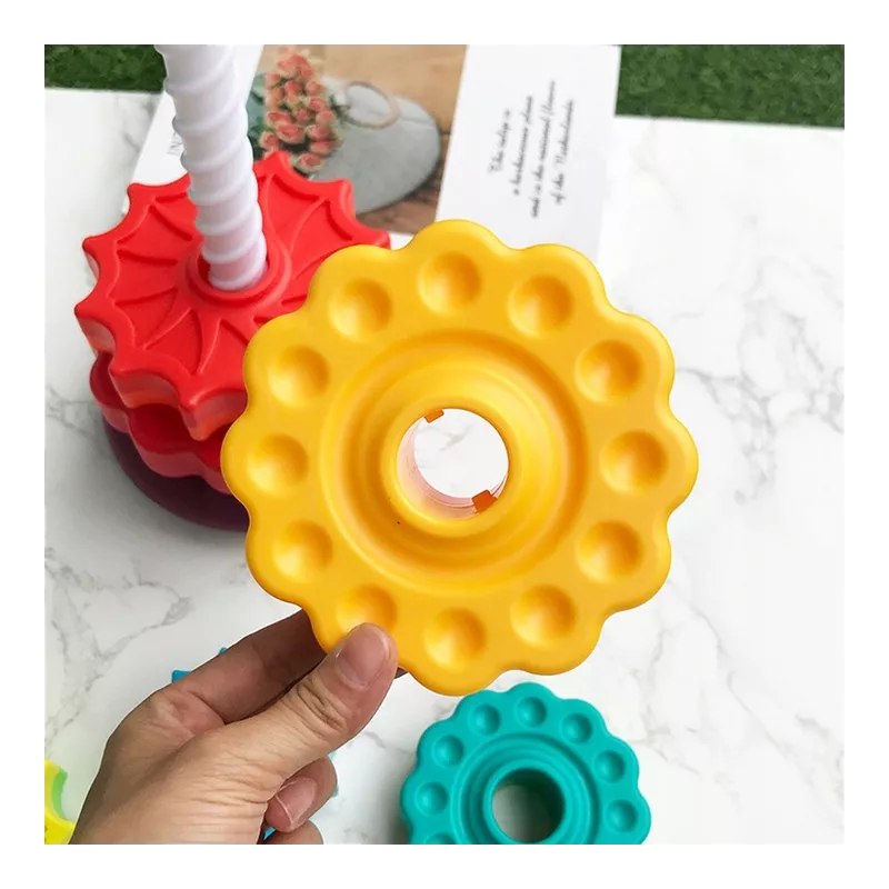 Dziecko samo decyduje, jak ułożyć krążki – w jakiej kolejności, kombinacji i stylu. To wspiera samodzielność, swobodę wyboru i kreatywne myślenie.
