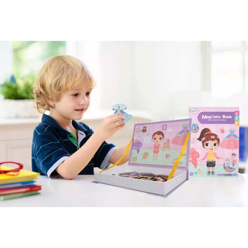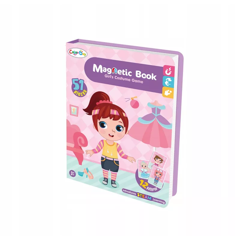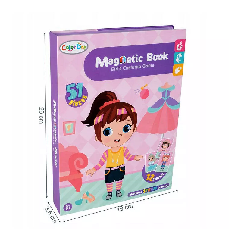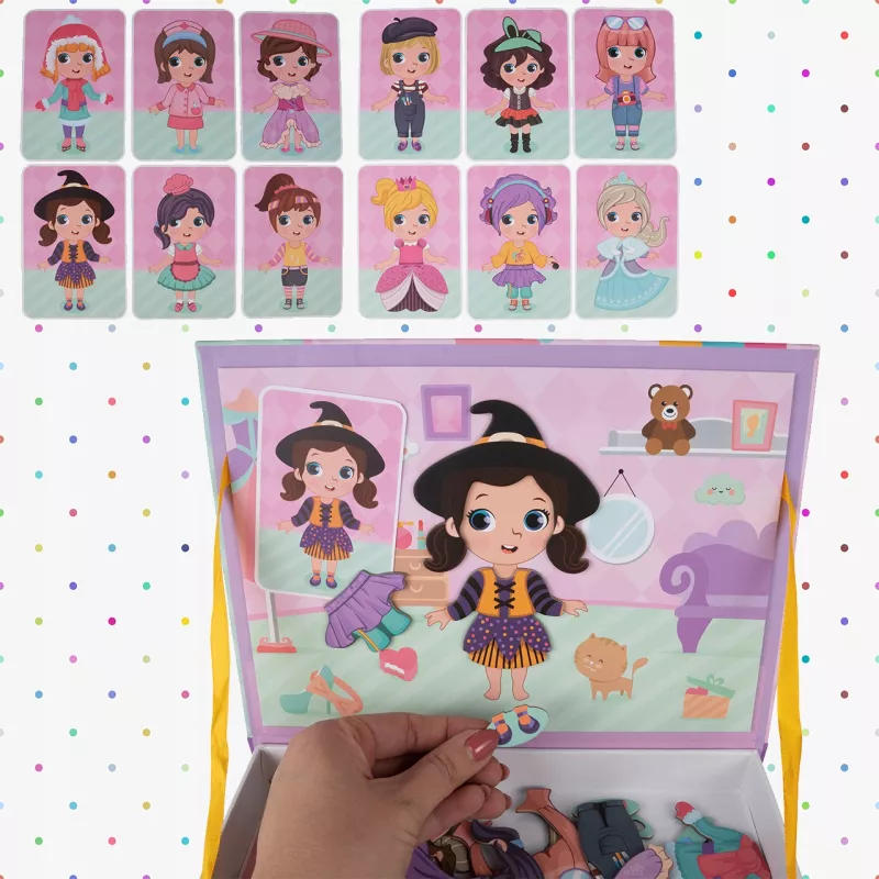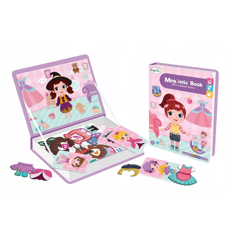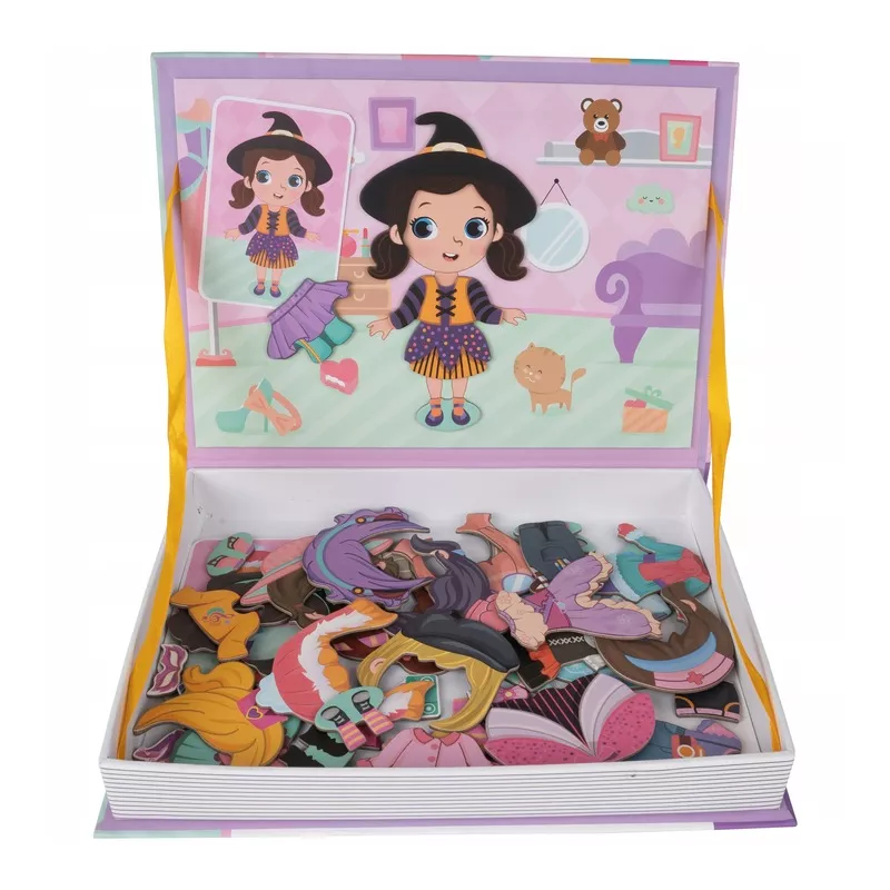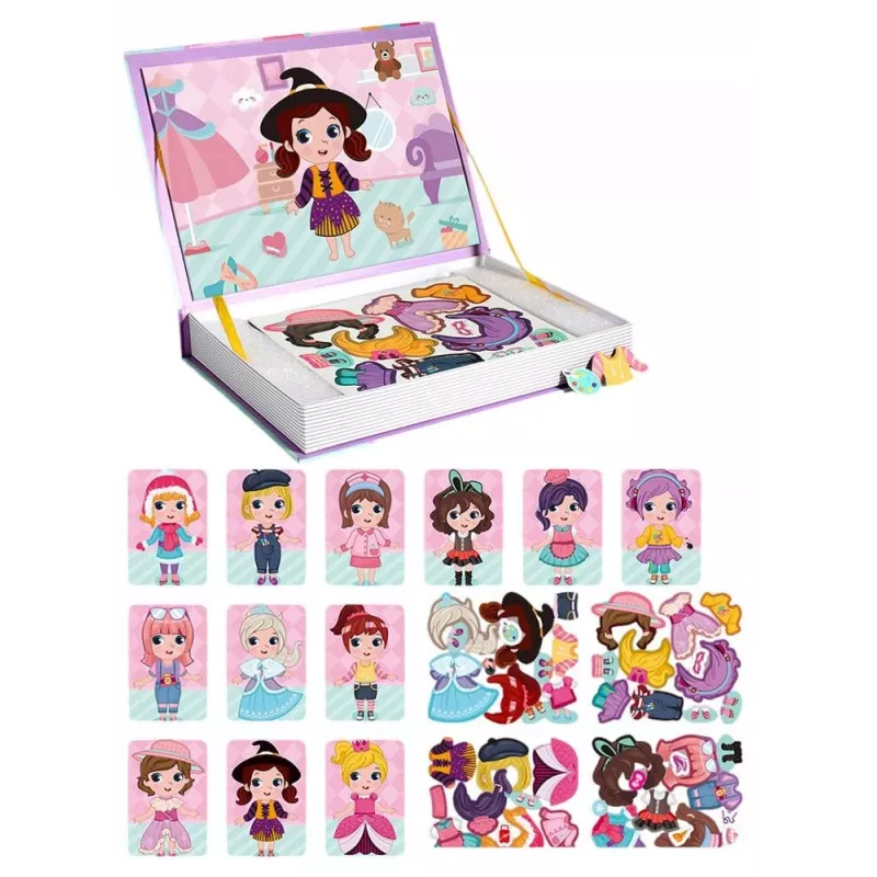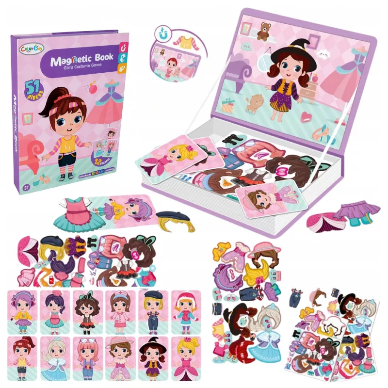 Kreatywna zabawka magnetyczna w formie książki – idealna dla małych miłośniczek mody! Twórz setki kombinacji ubrań, fryzur i dodatków.