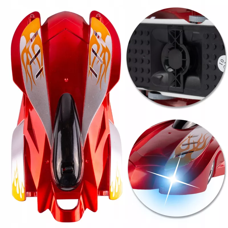 Samochód jeżdżący po ścianach to wyjątkowy pojazd RC wyposażony w technologię antygrawitacyjną, dzięki której może poruszać się nie tylko po podłodze, ale również po pionowych i poziomych powierzchniach. Wystarczy jeden przełącznik, aby zmienić zwykłą jazdę w widowiskowy przejazd po ścianach, suficie czy szklanych drzwiach!