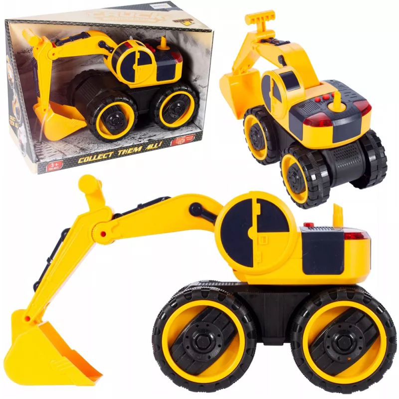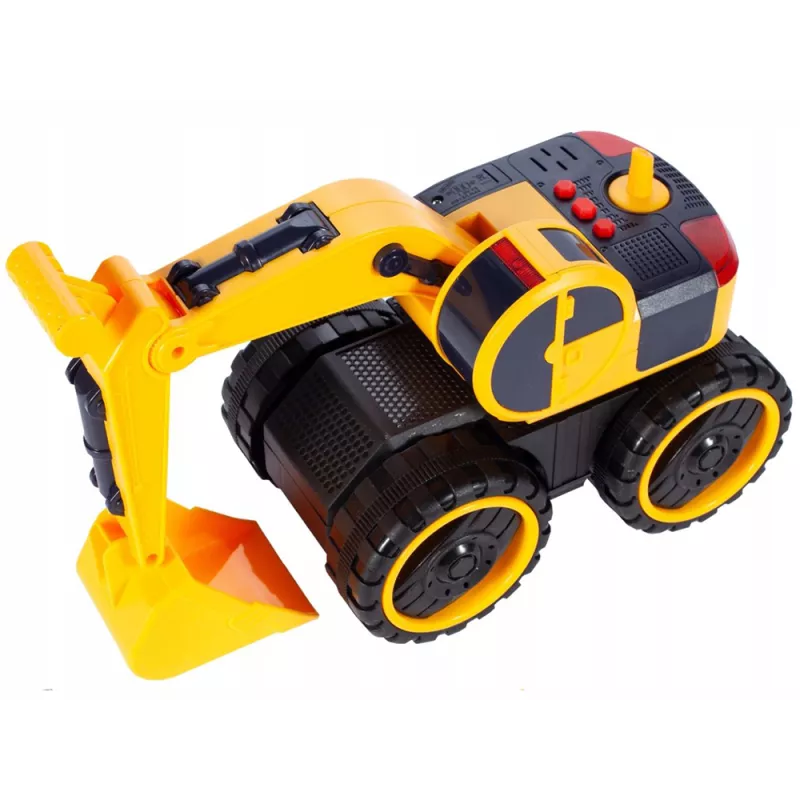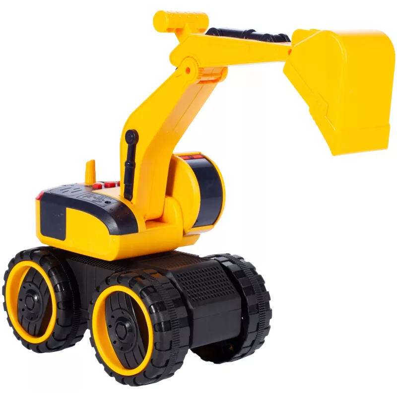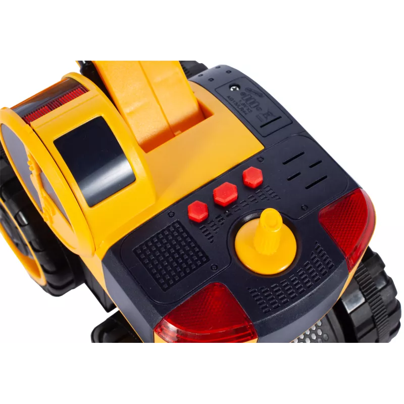 Czerwone przyciski znajdujące się na górze pojazdu uruchamiają dźwięki pracy koparki oraz klakson. W tym samym czasie migają czerwone światła, zwiększając realizm zabawy.
