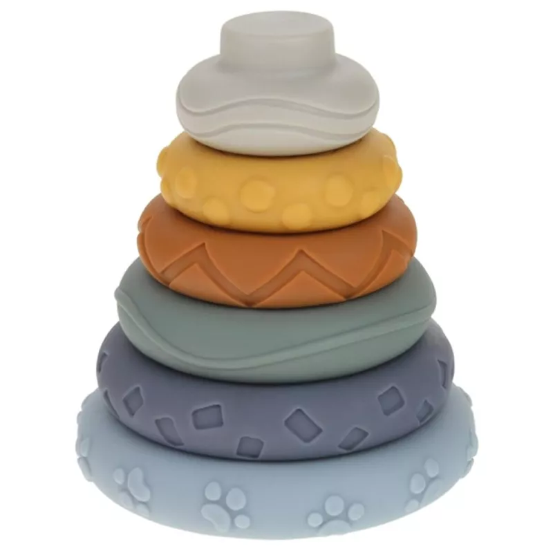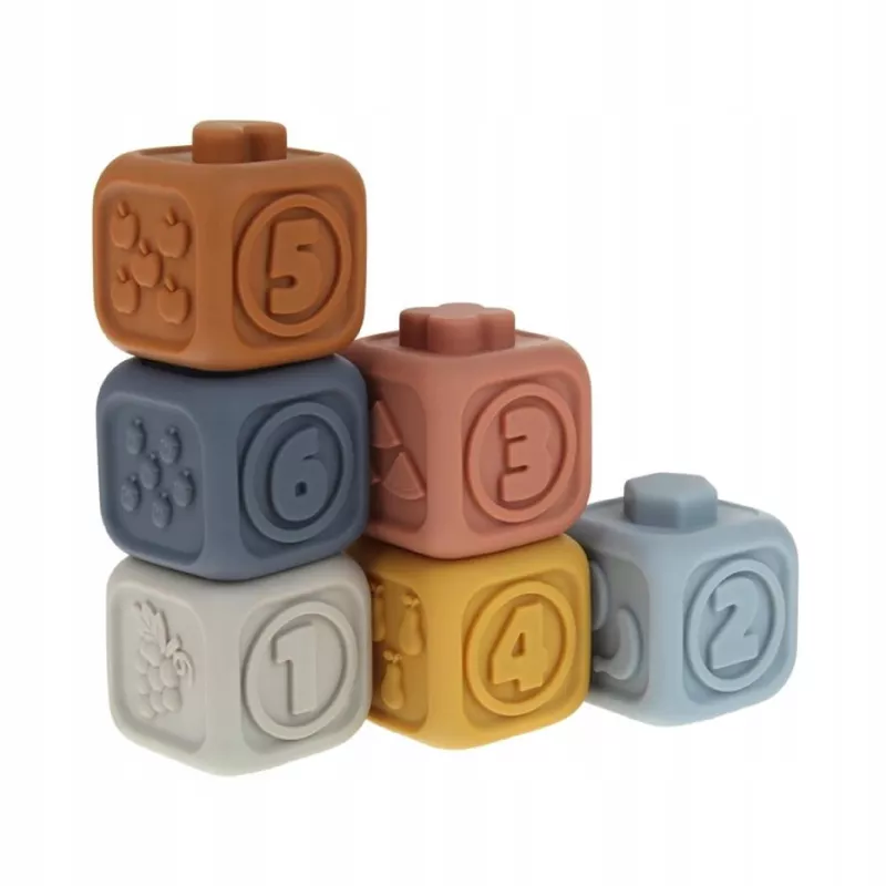 Klocki sensoryczne Montessori to bezpieczna i rozwijająca zabawka, która łączy naukę przez dotyk, kolor i kształt z radością zabawy. Maluch może budować piramidę, dopasowywać elementy, poznawać kolory i faktury, a także korzystać z klocków jako miękkich gryzaków w okresie ząbkowania .