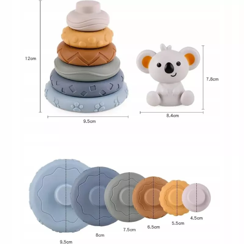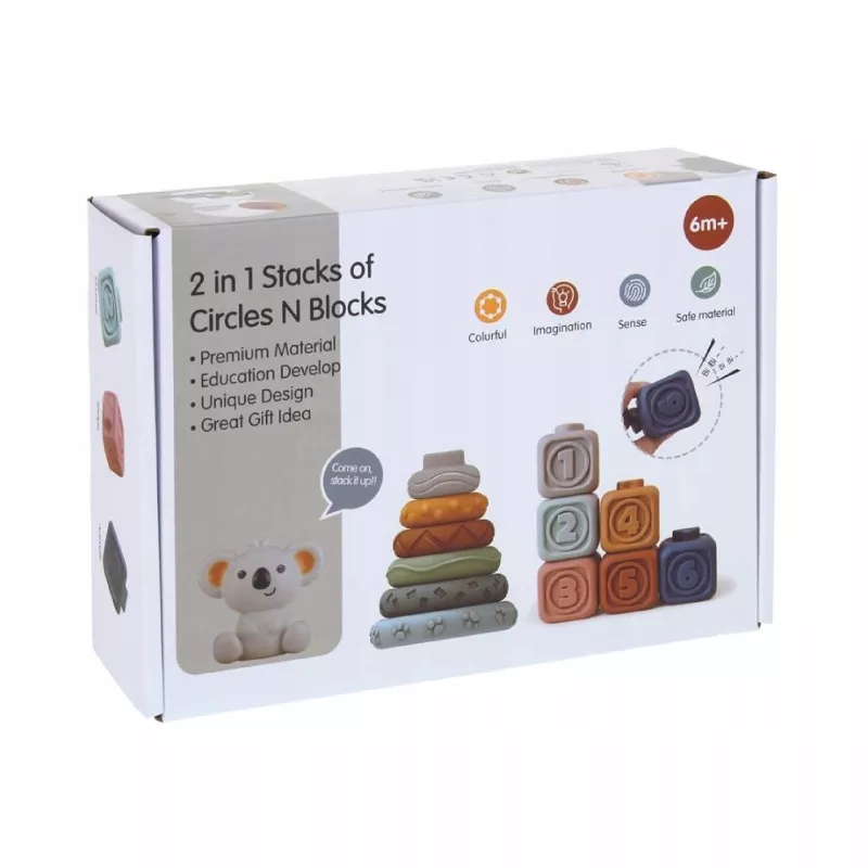- 🔹 Komplet: 6 krążków + 6 klocków + 1 koala = 13 elementów