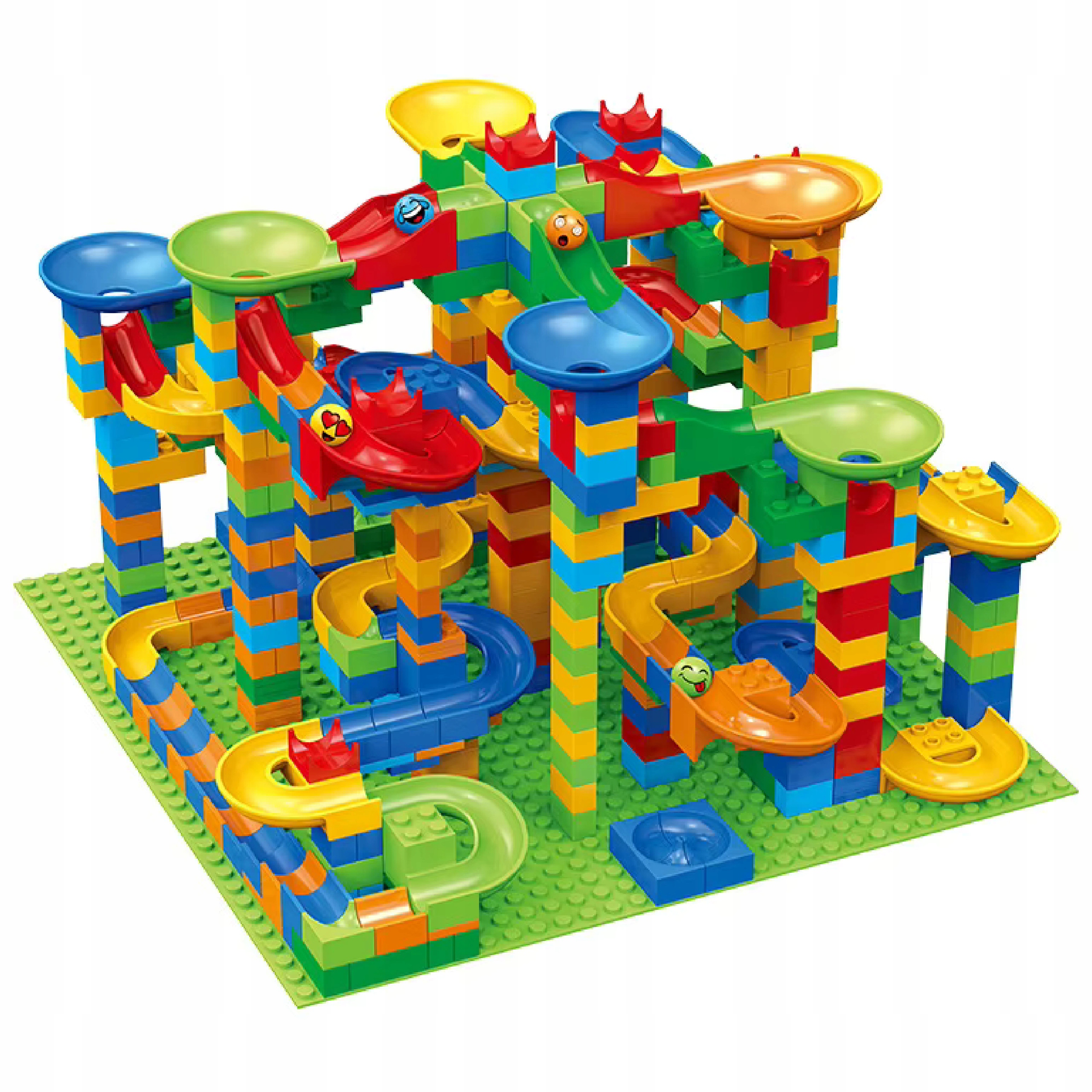 Zestaw zawiera liczne elementy konstrukcyjne, takie jak zjeżdżalnie, mosty, kolumny, spirale, kołowrotki oraz kominy, które można dowolnie łączyć. Mnogość możliwych kombinacji zapewnia wielogodzinną, angażującą zabawę.