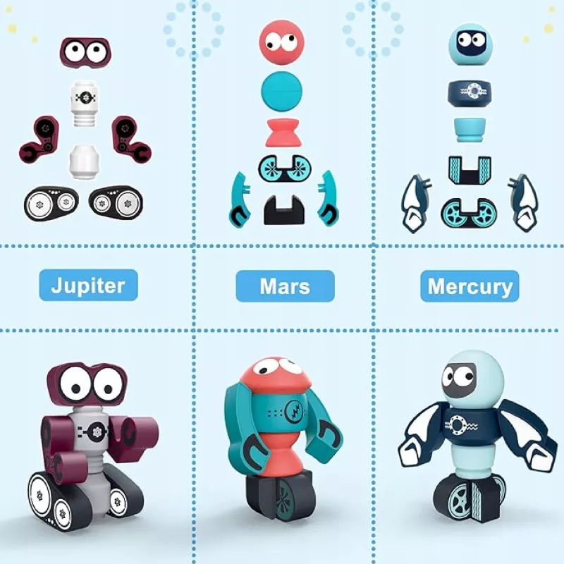 Magnetyczna zabawka do układania robotów to kreatywny zestaw konstrukcyjny przeznaczony dla dzieci w wieku od 3 do 6 lat.