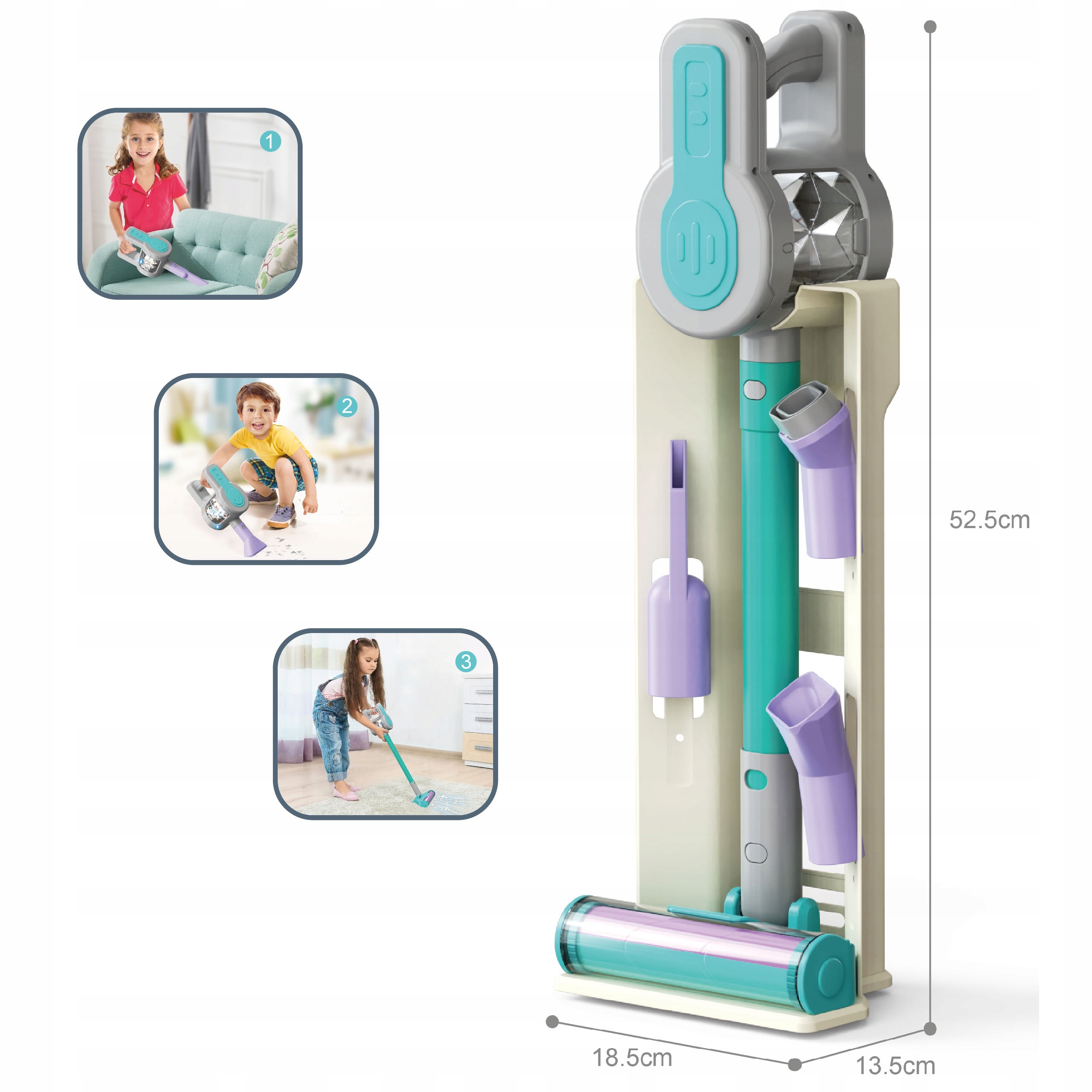 Odkurzacz zapewnia bezpieczną i kreatywną zabawę, jednocześnie rozwijając wyobraźnię, samodzielność oraz podstawowe nawyki porządkowe.