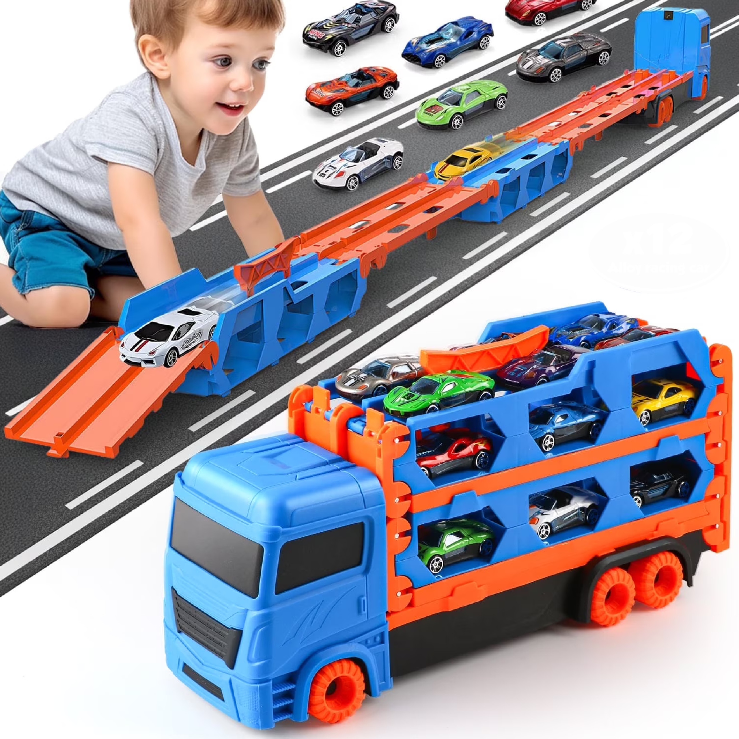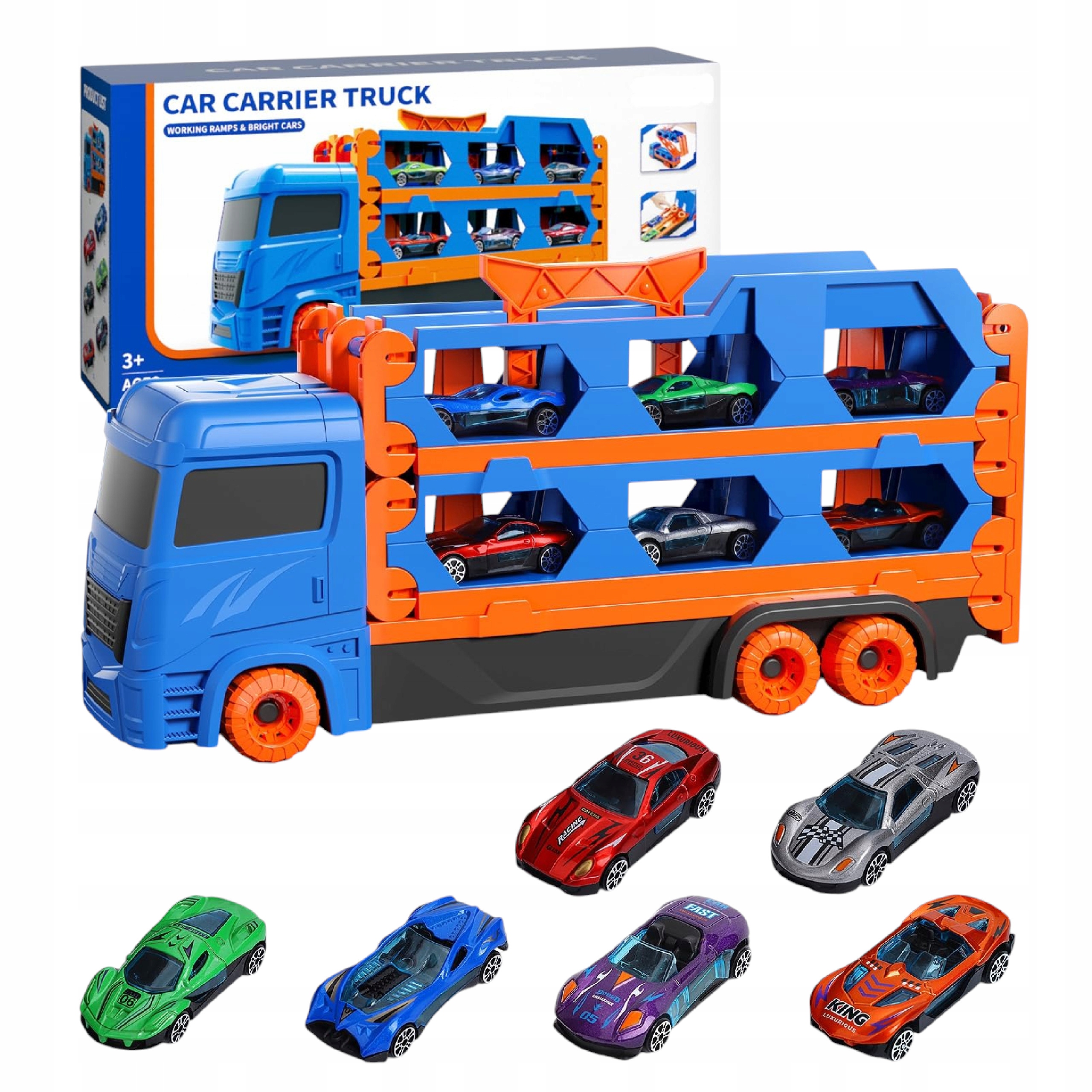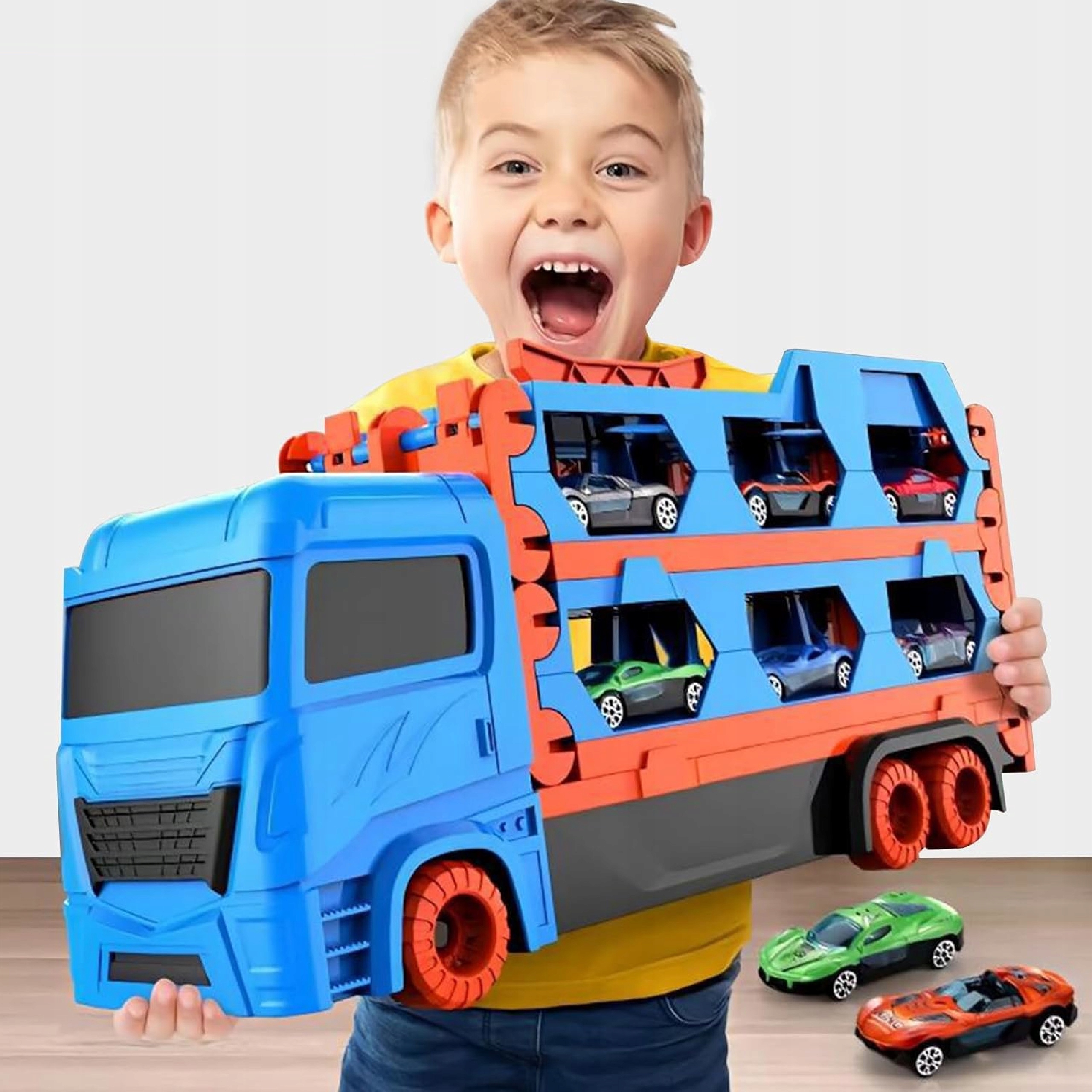 Rozkładana ciężarówka transportowa VATOS 7w1 to coś więcej niż zwykłe autko – to mobilny tor wyścigowy, laweta, organizer na samochodziki i kreatywna zabawka edukacyjna w jednym zestawie.