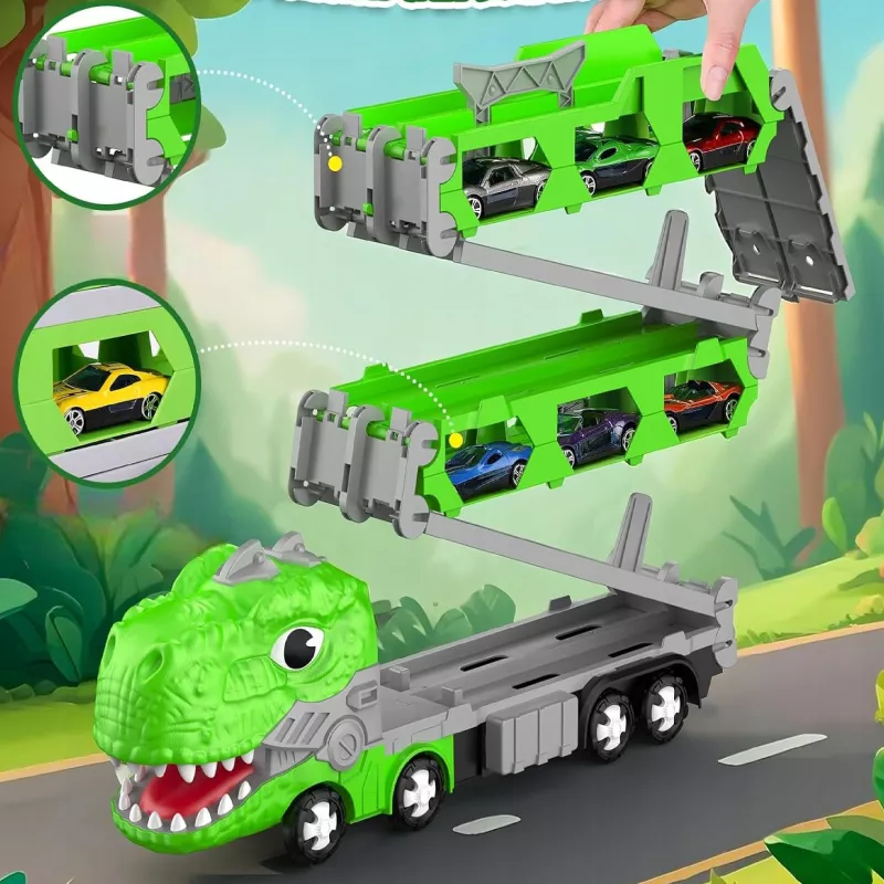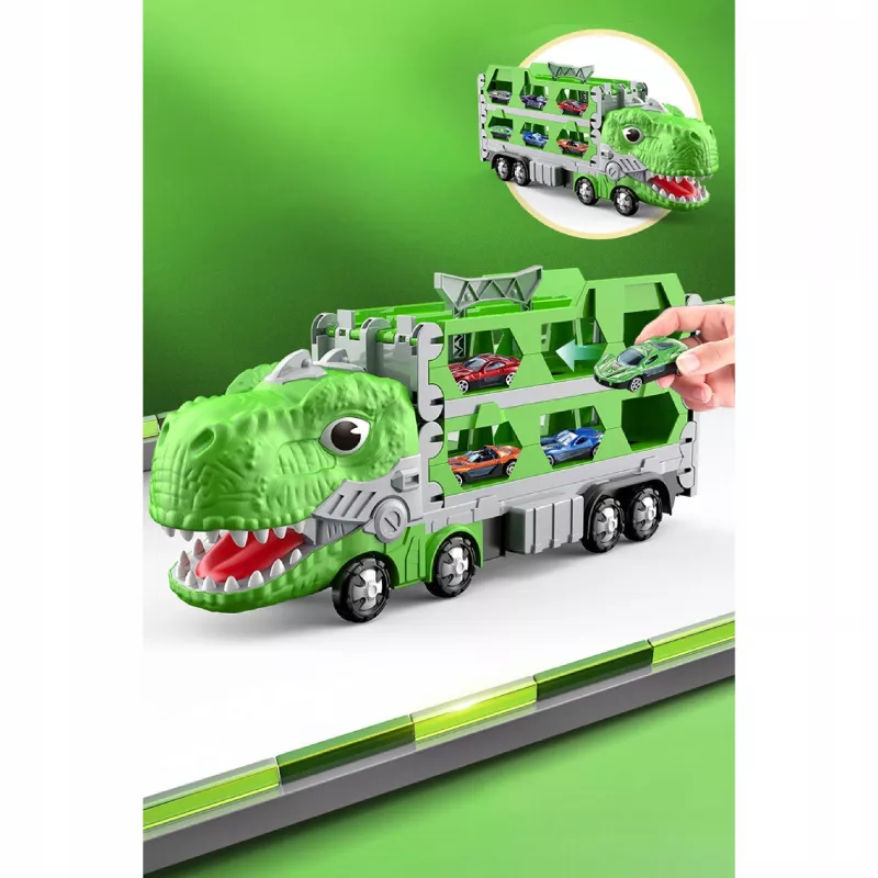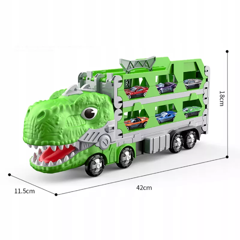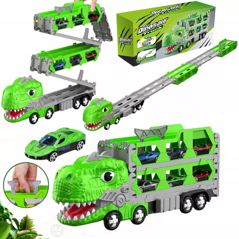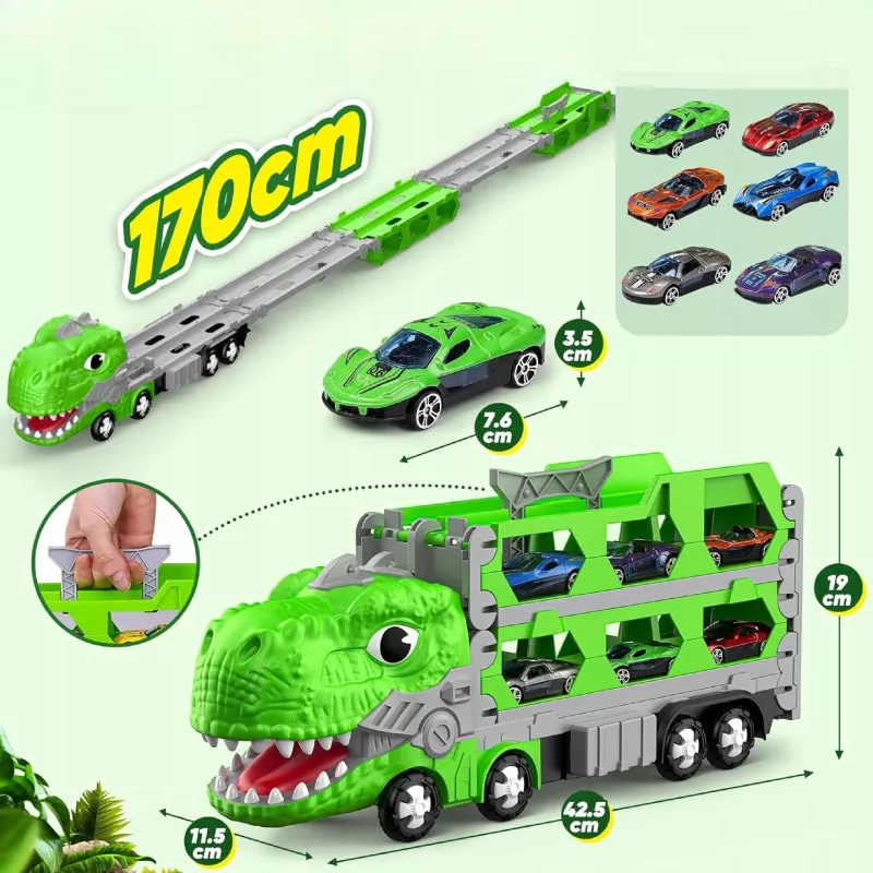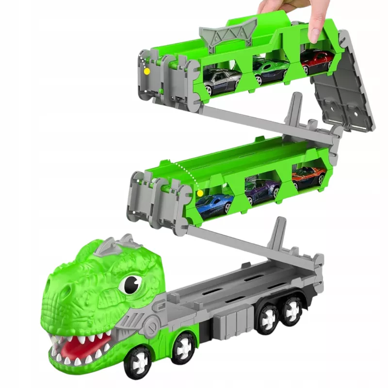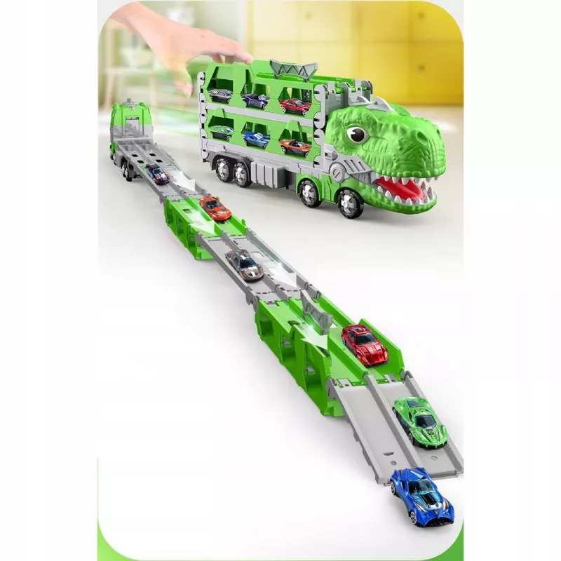 Ciężarówka–dinozaur z torem wyścigowym to zabawka, którą dziecko pokocha od pierwszej rozgrywki.