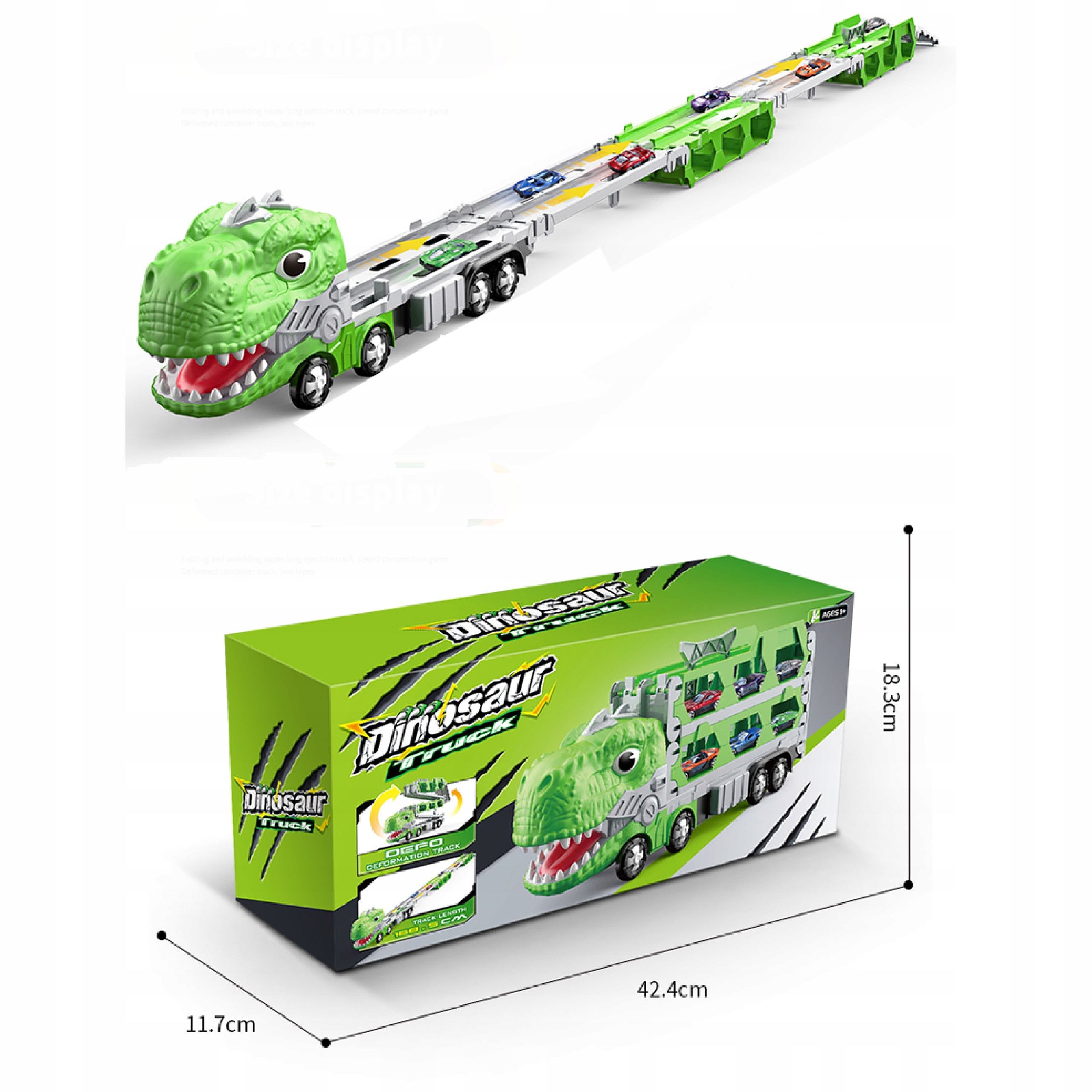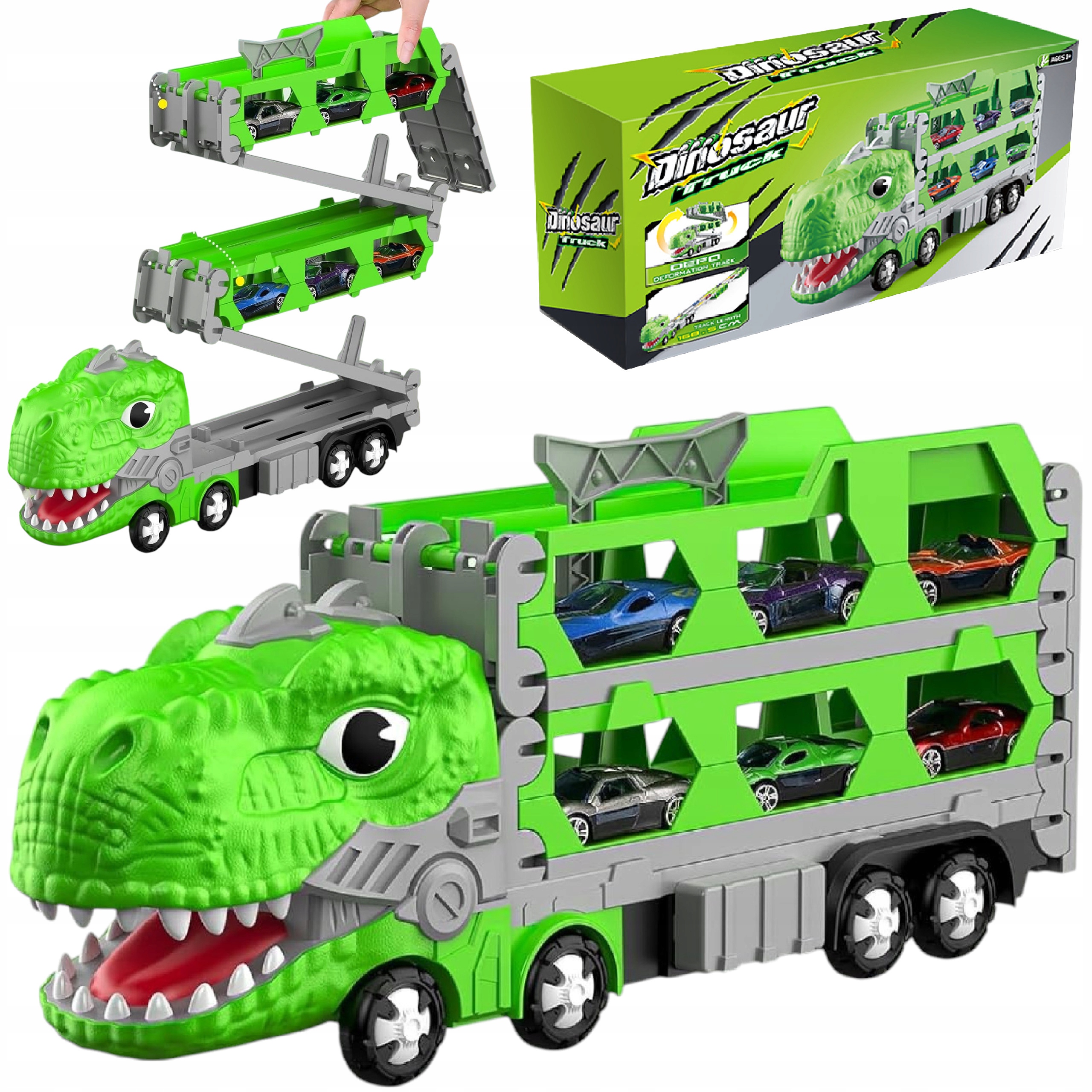 Ciężarówka dinozaur + Tor wyścigowy + 2 resoraki