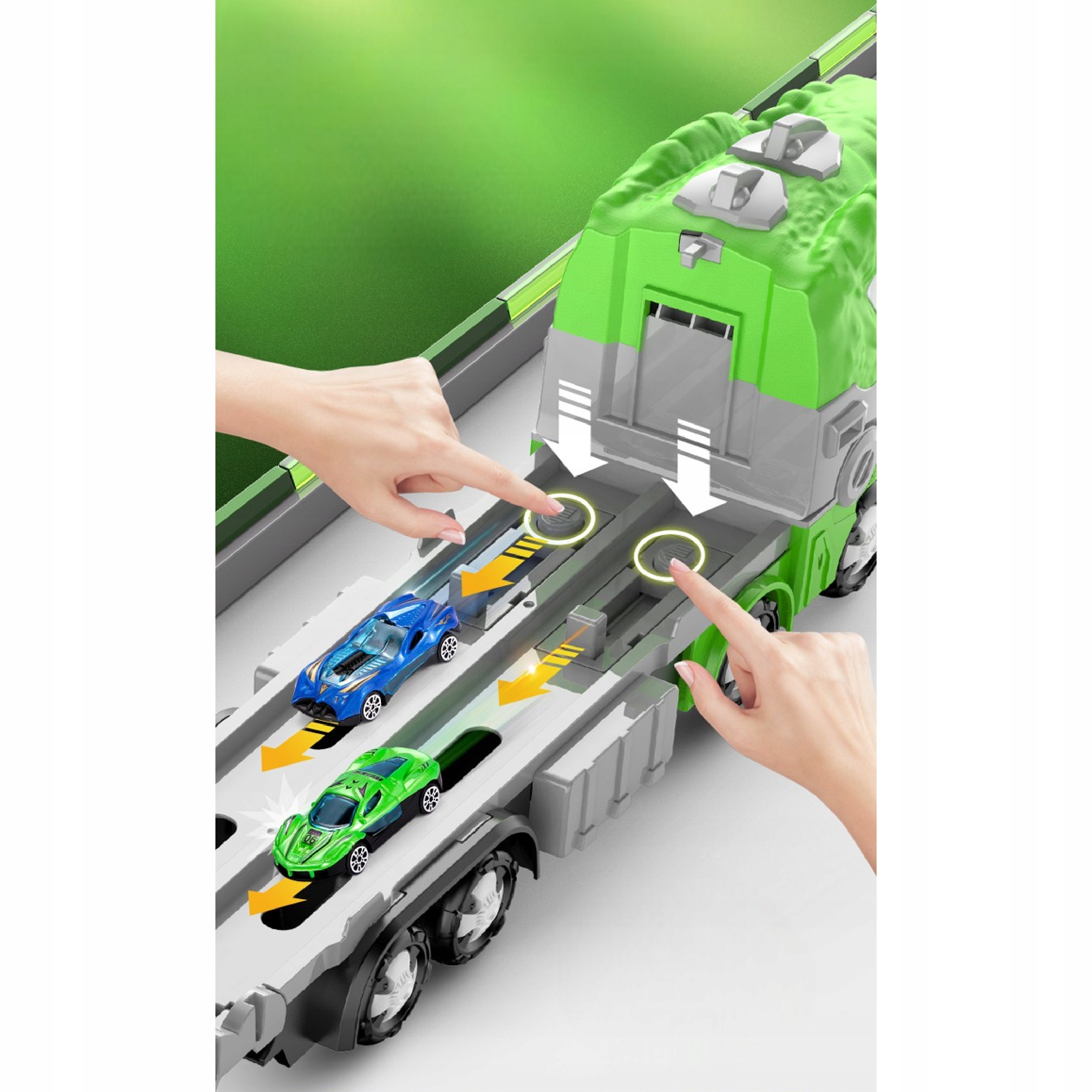 Obsługa jest niezwykle prosta – wystarczy ustawić samochodziki na torze, nacisnąć przycisk startowy i obserwować emocjonujący wyścig aż do mety.