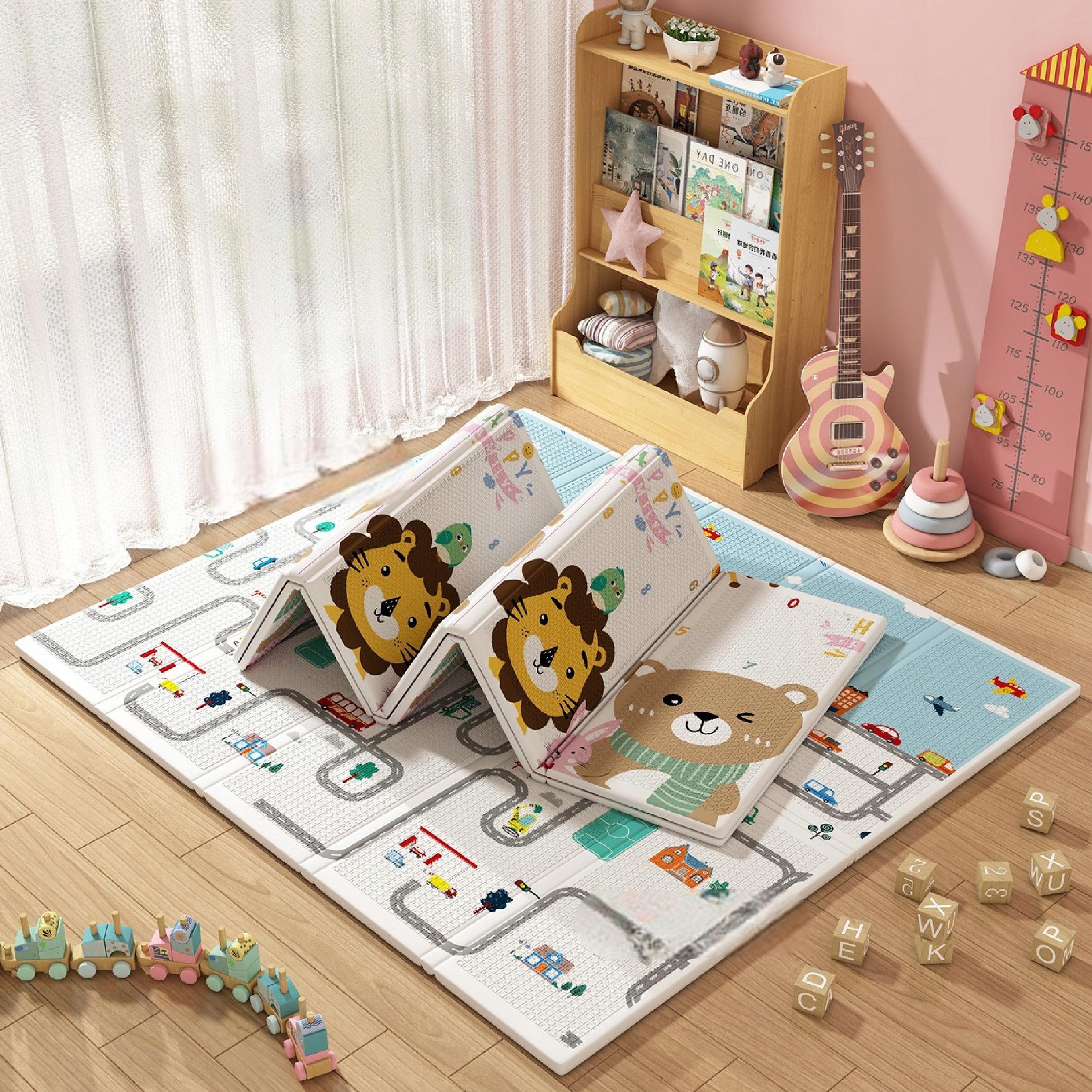 Składana mata edukacyjna pozwala w kilka chwil uporządkować przestrzeń po zabawie. Świetnie sprawdzi się nie tylko w pokoju dziecka, ale również: