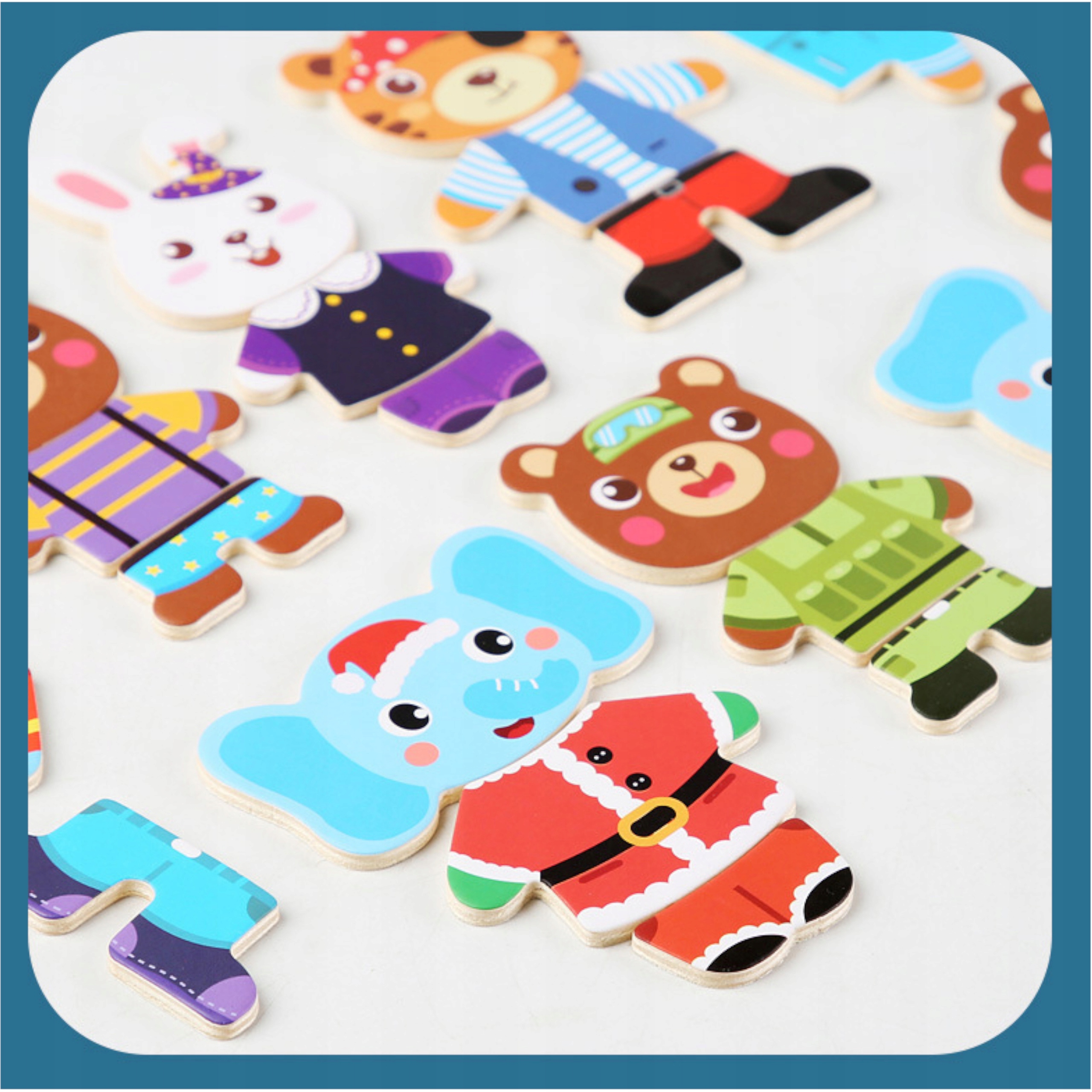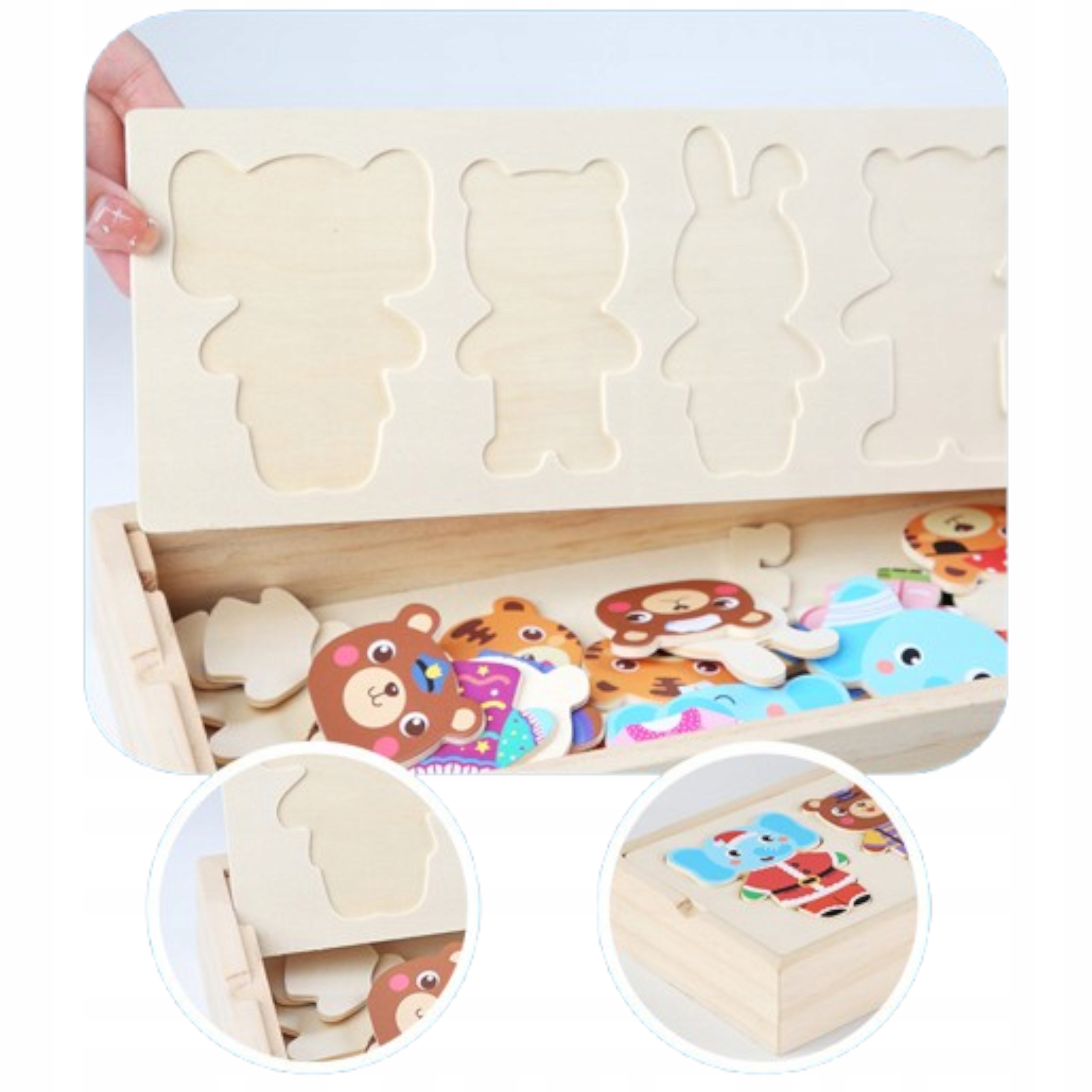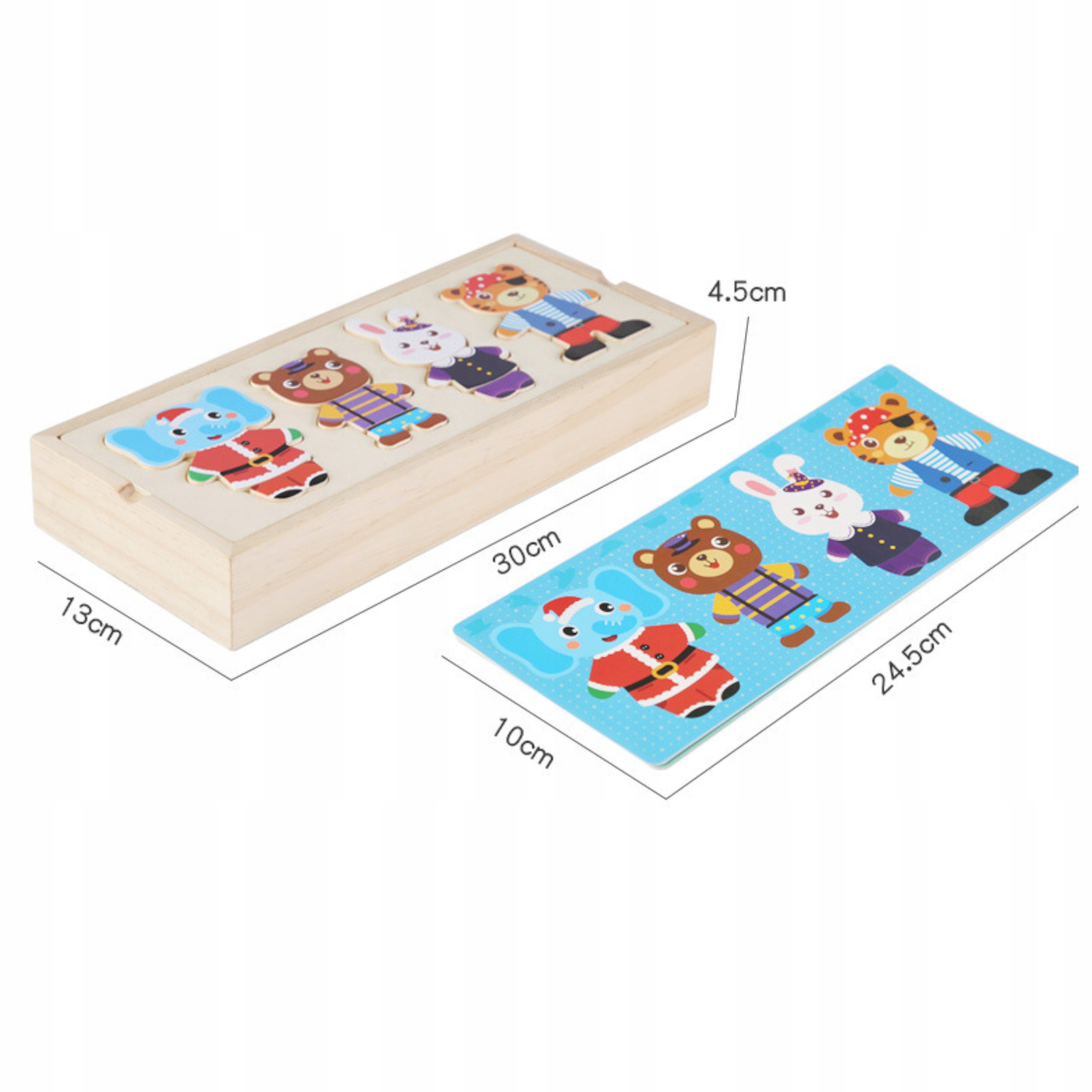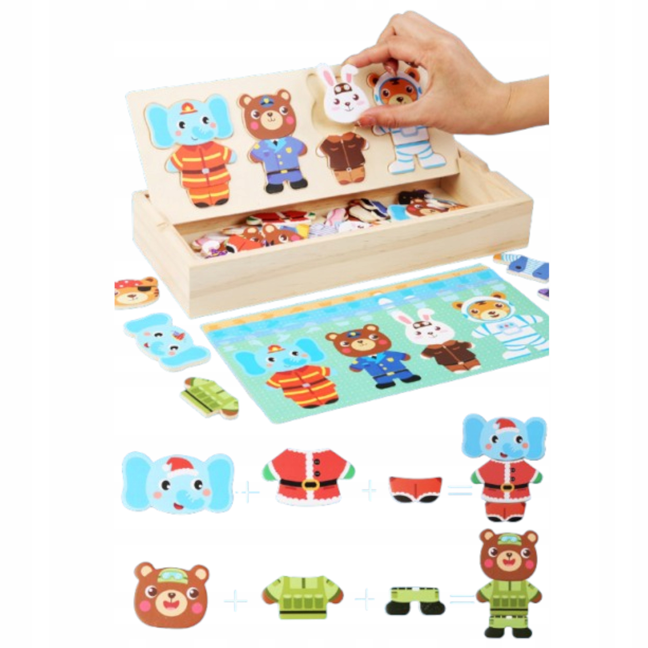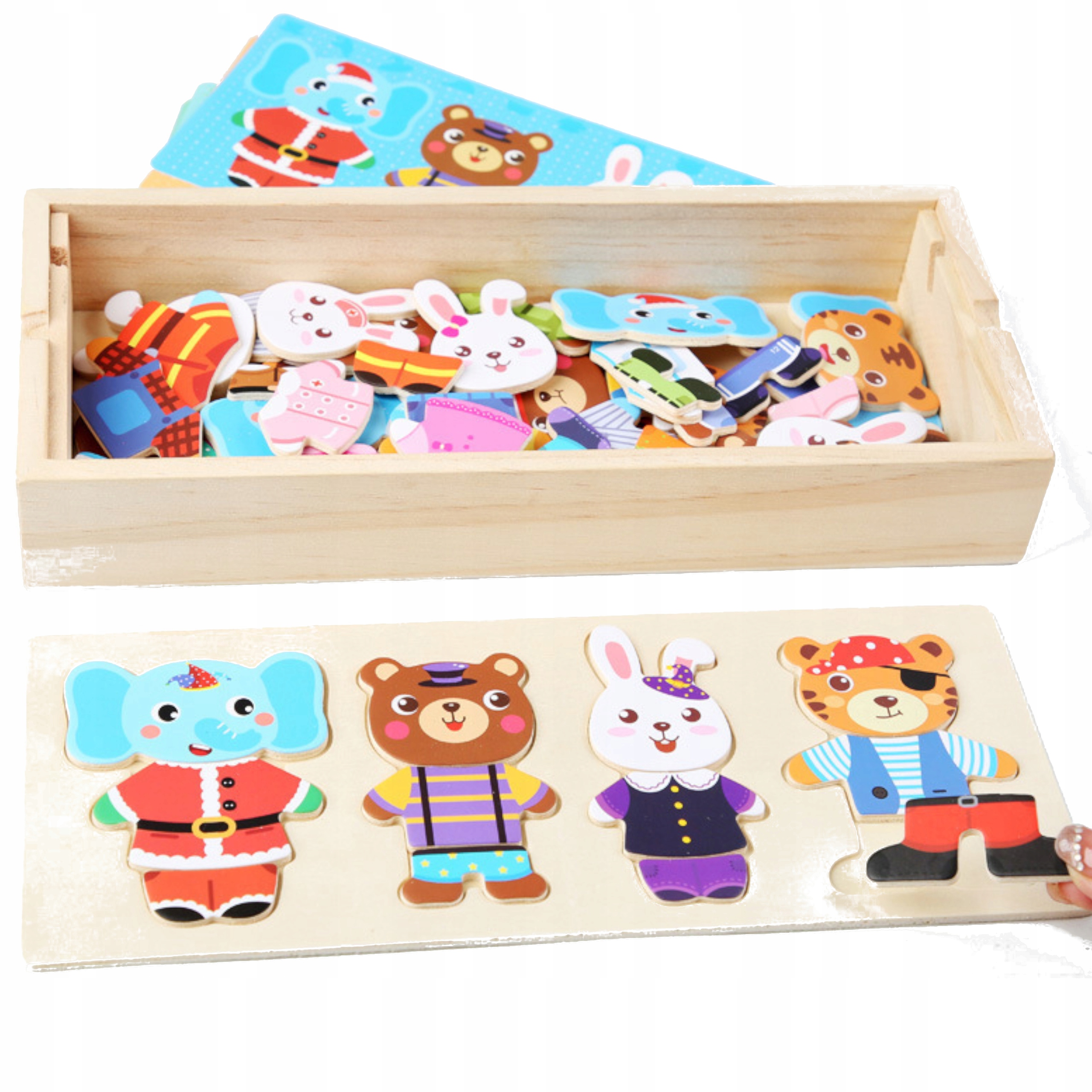 Ubierz zwierzątka i stwórz rodzinę pełną emocji – drewniana układanka 74 el.
