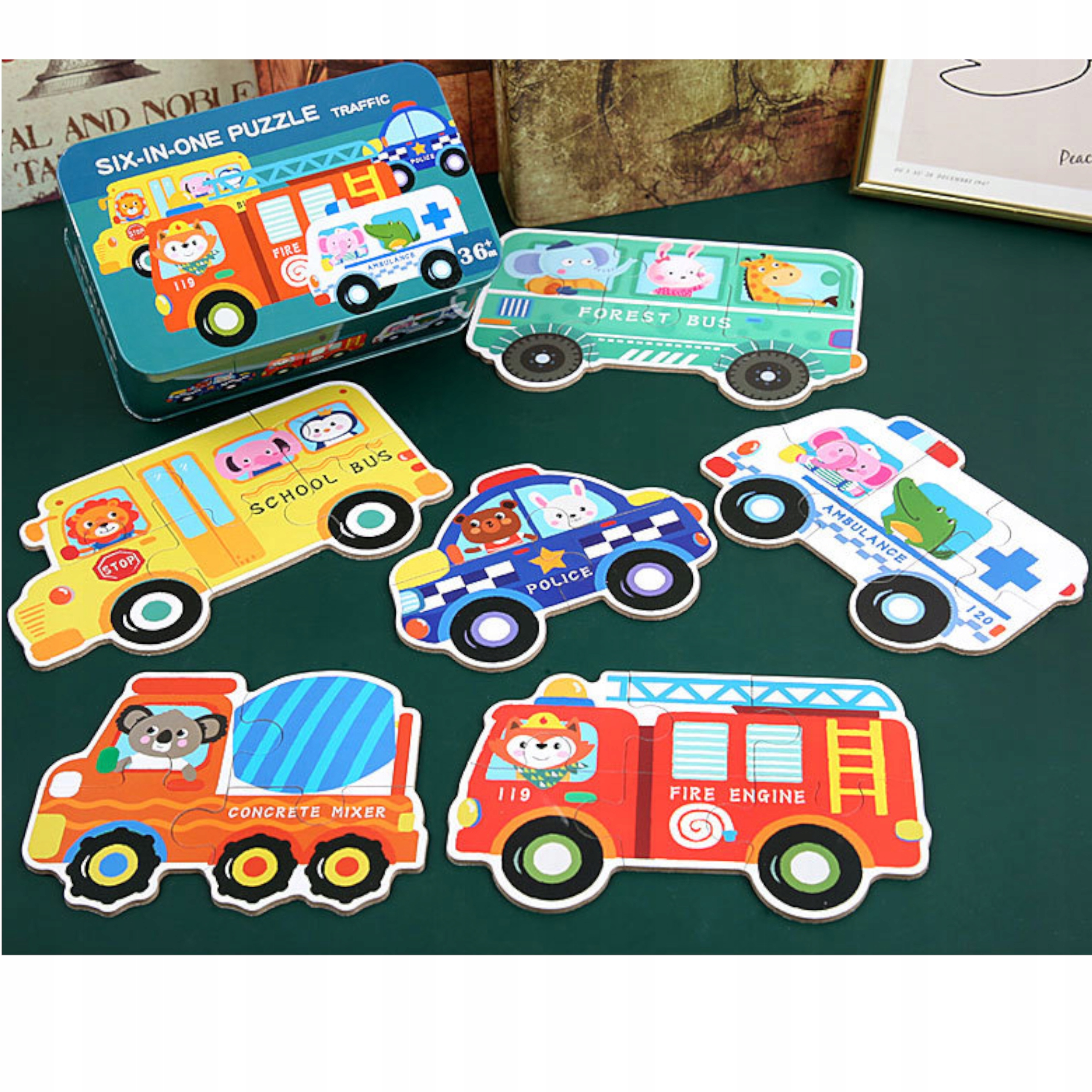 ✅Edukacyjna układanka z motywem zwierząt pojazdów – 6 różnych obrazków pojazdów