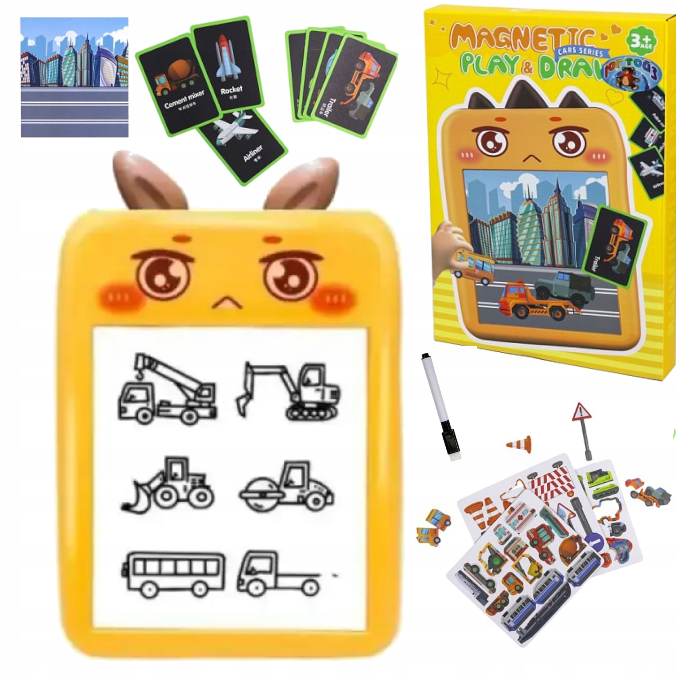 Magnetyczna tablica do rysowania z motywem pojazdów to kreatywna zabawka edukacyjna dla dzieci od 3 roku życia, która łączy naukę, rozwój manualny i świetną zabawę bez bałaganu. Zestaw został zaprojektowany z myślą o rozwijaniu wyobraźni, koncentracji i koordynacji ręka–oko.