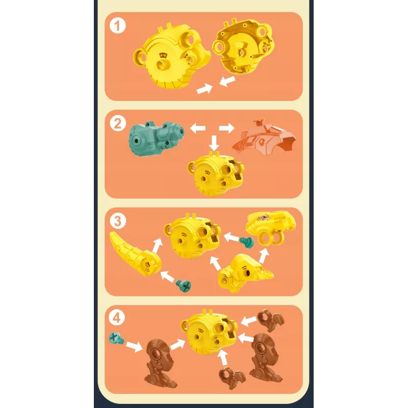 Interaktywny zestaw klocków konstrukcyjnych dinozaury do skręcania to edukacyjna zabawka łącząca budowanie, kreatywną zabawę oraz element rywalizacji. Dziecko samodzielnie skręca modele prehistorycznych stworzeń przy użyciu dołączonych śrubokrętów, a następnie może wykorzystać wyrzutnie ze strzałkami do dynamicznej zabawy.