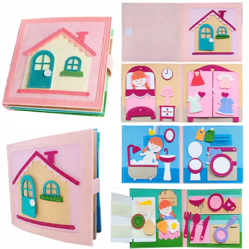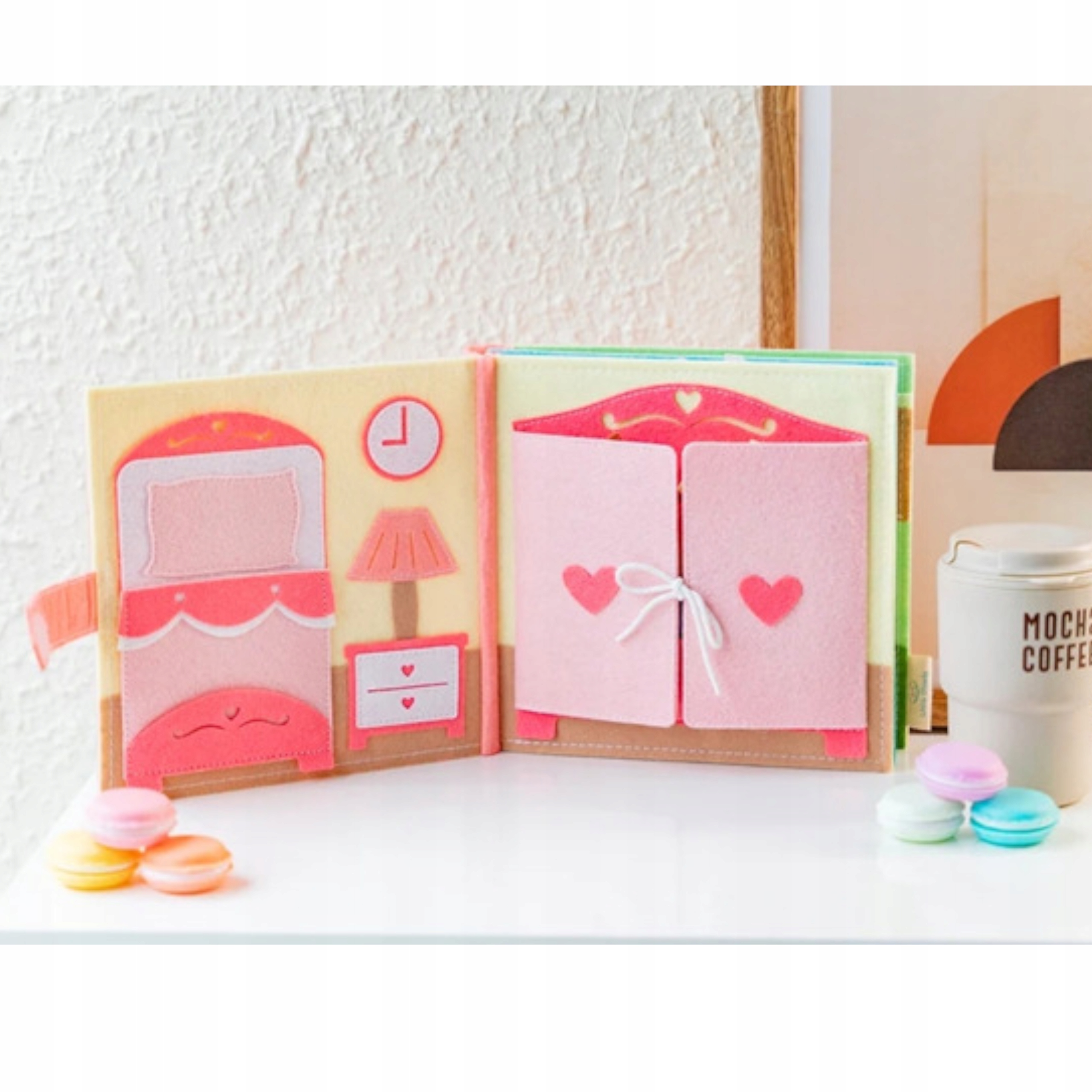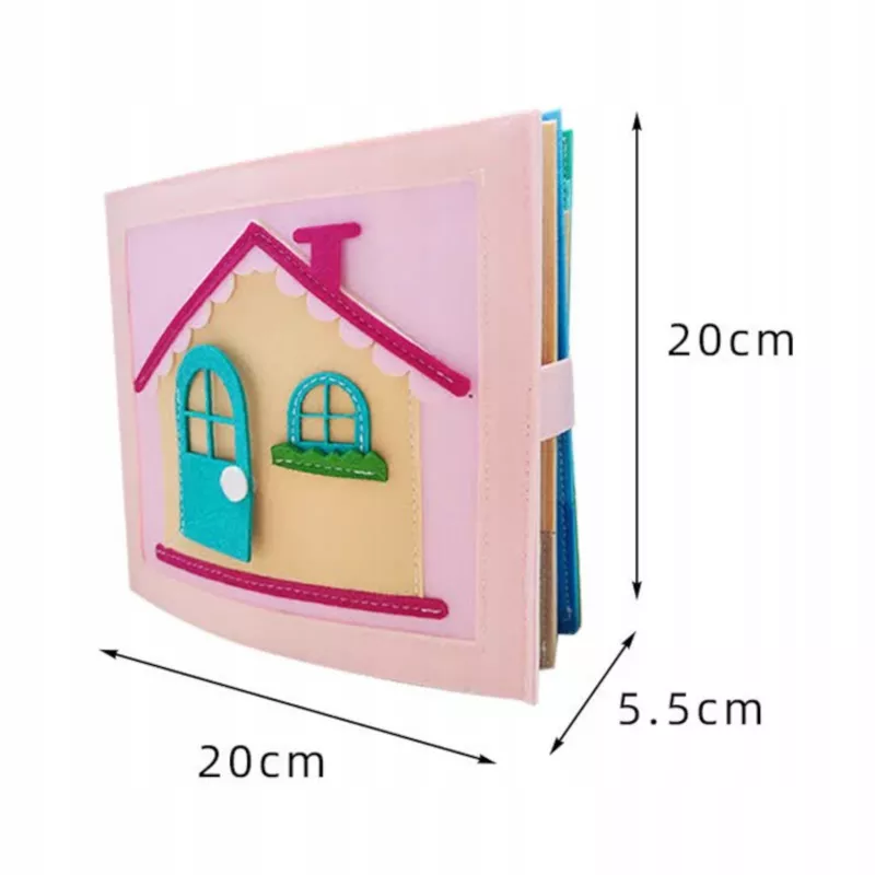 Kolorowa cicha książeczka sensoryczna filcowa  z motywem domu to kreatywna i rozwijająca zabawka edukacyjna dla dzieci. Zaprojektowana tak, aby wspierać rozwój motoryki małej, logicznego myślenia oraz samodzielności poprzez zabawę.