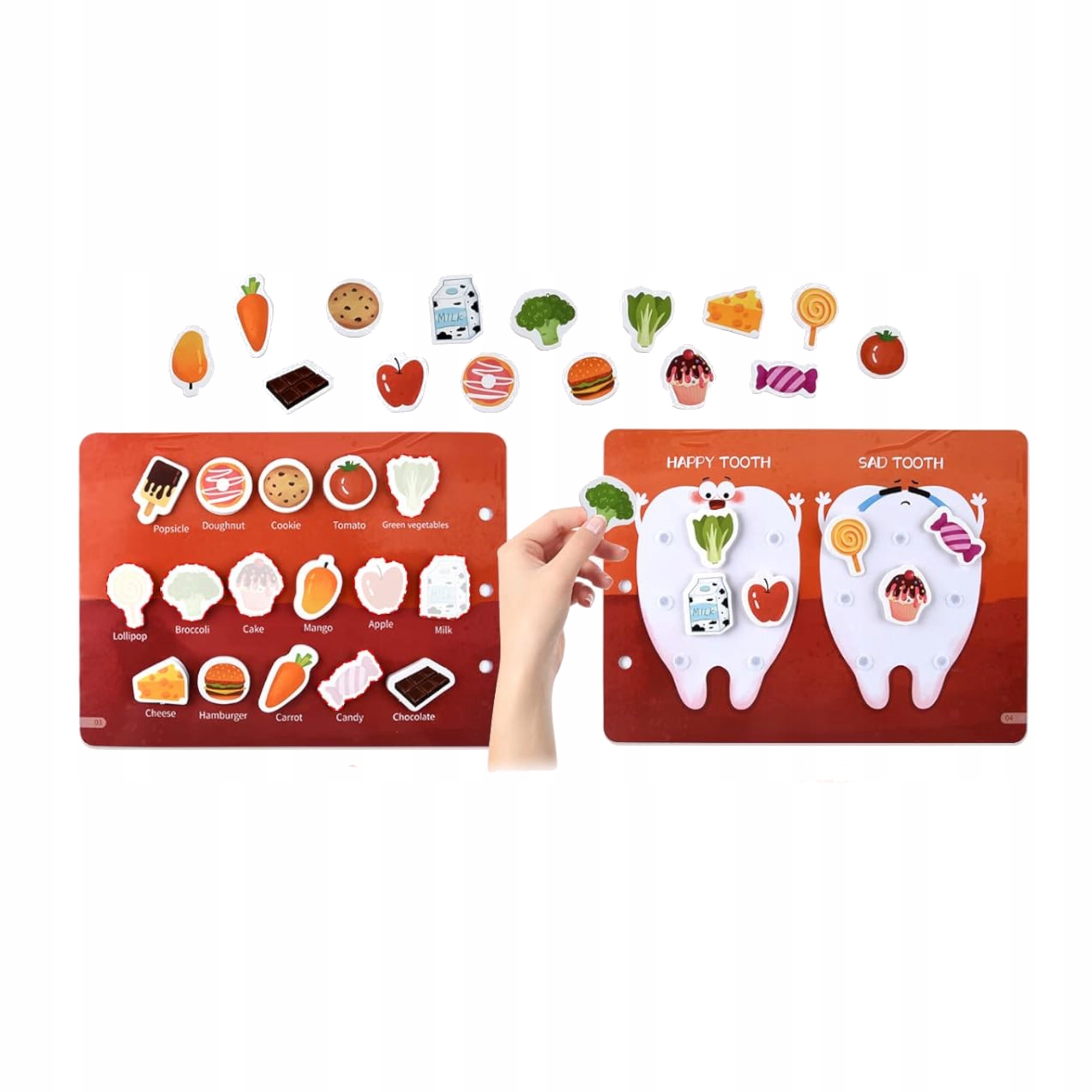Książeczka Edukacyjna Sensoryczna Busy Book – Żywność, Części Ciała, Ubrania na Rzepy 3+