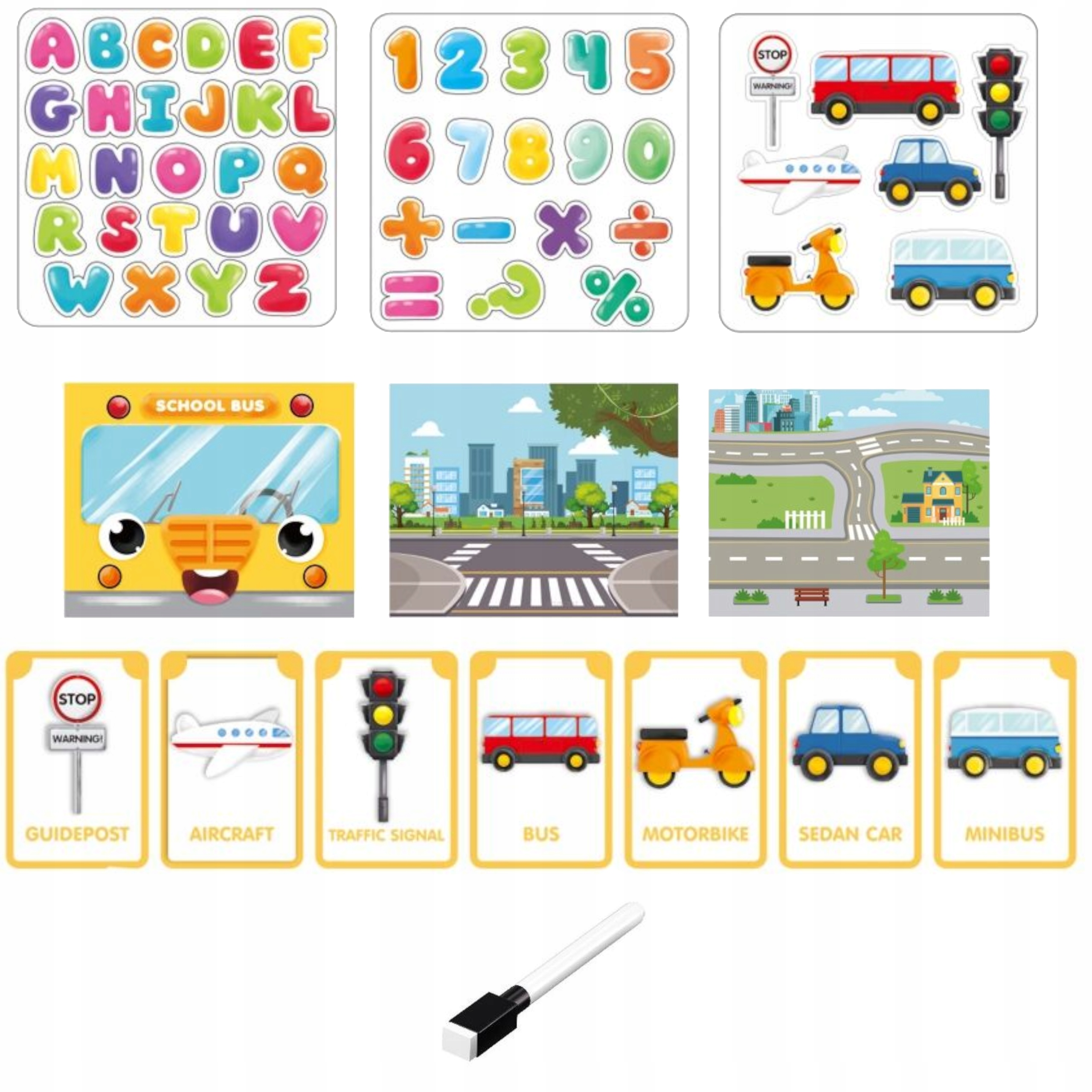 Edukacyjna tablica magnetyczna z motywem środków transportu to funkcjonalne narzędzie wspierające naukę i rozwój dziecka poprzez zabawę. Łączy w sobie funkcję tablicy magnetycznej oraz suchościeralnej, dzięki czemu oferuje szerokie możliwości edukacyjne w domu, przedszkolu i szkole.