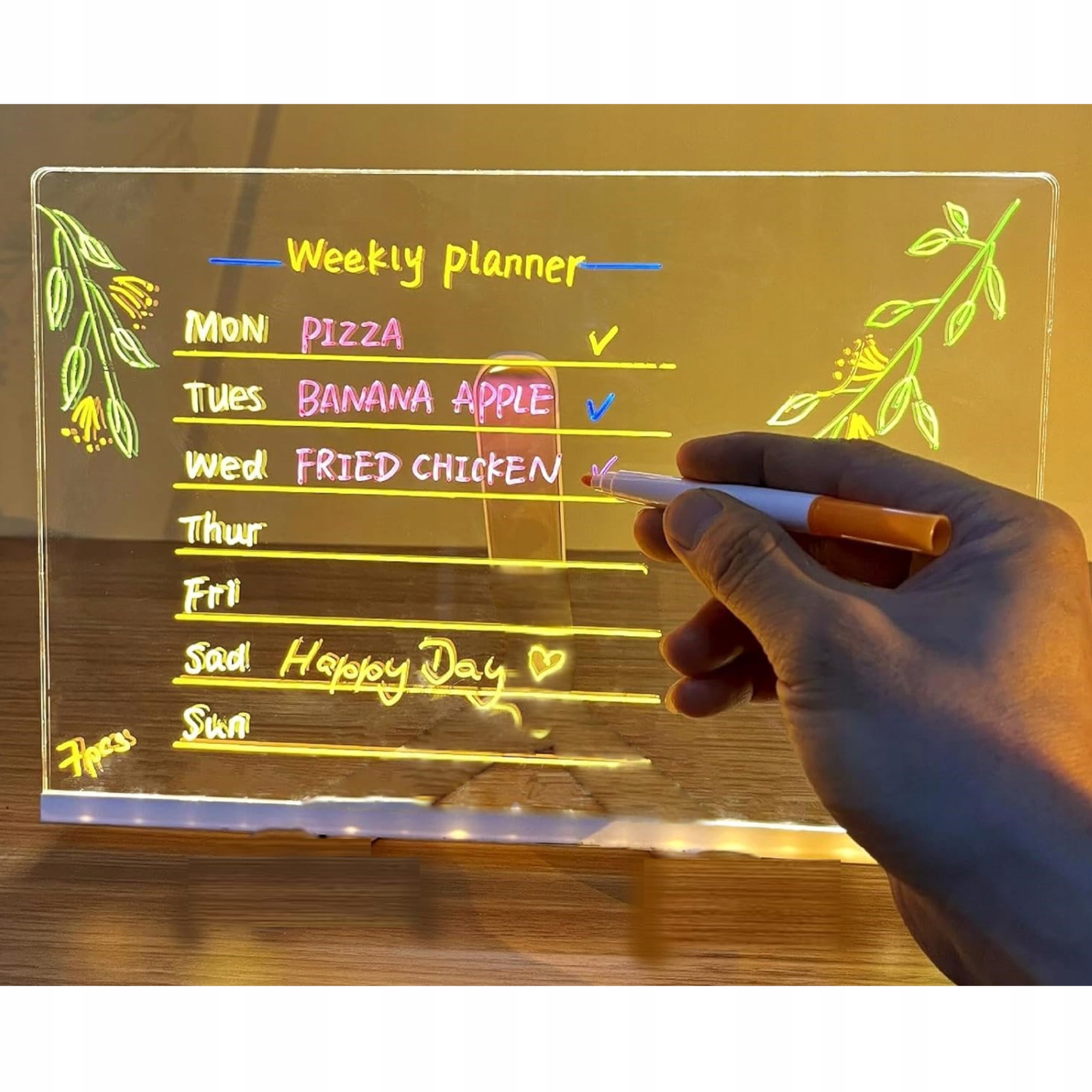 Nowoczesna tablica LED do rysowania i pisania to funkcjonalne i efektowne rozwiązanie do domu, biura, lokalu usługowego czy pokoju dziecka. Dzięki podświetlanej płycie akrylowej Twoje notatki, rysunki i komunikaty zyskują wyjątkowy efekt neonowego światła.