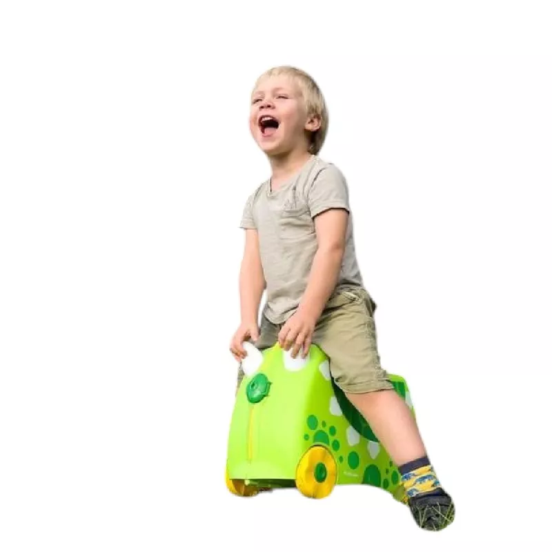 Powiedz do widzenia nudnym podróżom, łzom i marudzeniu! Przedstawiamy Trunki Dinozaur Dudley – pierwszą na świecie walizkę, na której Twoje dziecko może jeździć!