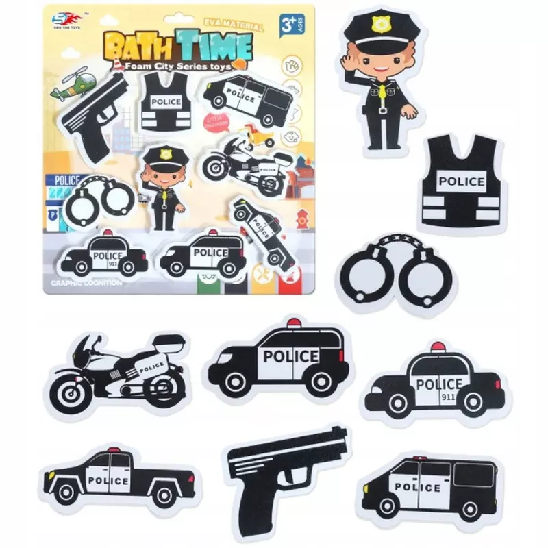 ✅ Radosna kąpiel i nauka w jednym – 9 elementów z motywem policji zachęca dziecko do samodzielności i odgrywania nowych scenek.