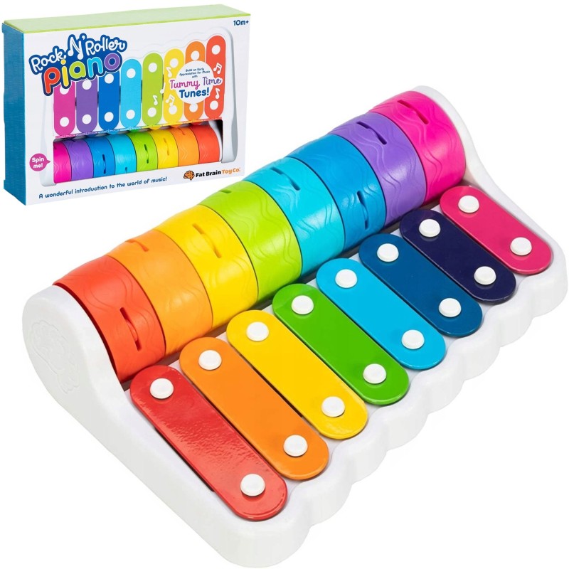 Rock N'Roller Piano to niezwykła zabawka muzyczna dla dzieci, która łączy klasyczne dzwonki z nowoczesnym pomysłem na zabawę. Zamiast tradycyjnego uderzania pałeczką, maluszek wprawia w ruch kolorowe kółeczka, które uderzając o dzwonki, wydobywają dźwięki i zachęcają do zabawy muzyką.