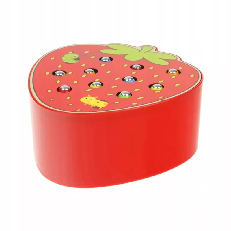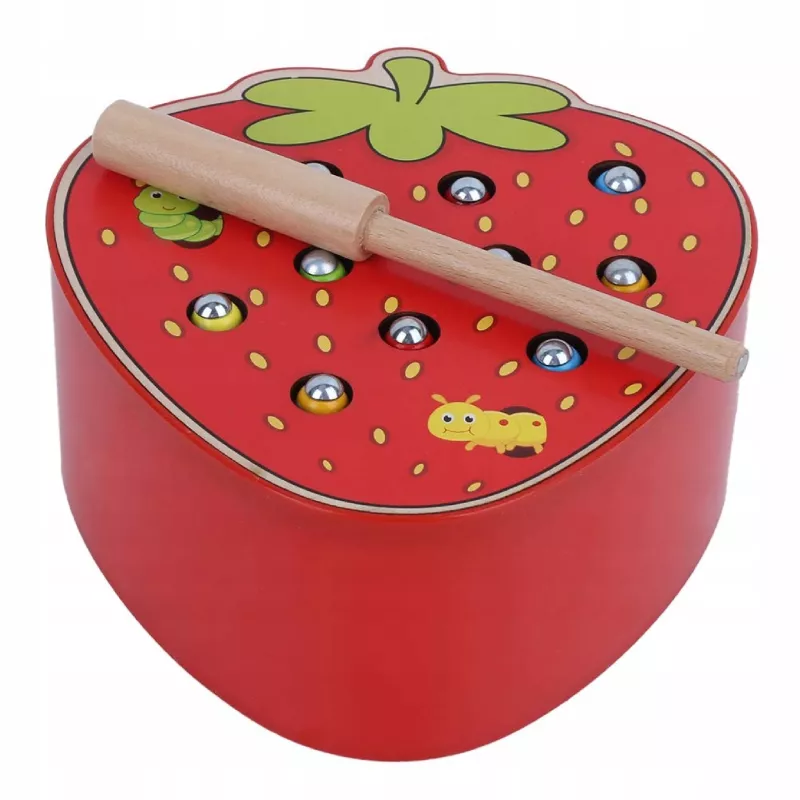 Odkryj drewnianą grę zręcznościową „Truskawka na magnes” – edukacyjną i angażującą zabawkę dla przedszkolaków, która rozwija motorykę małą, koordynację oko–ręka i koncentrację, jednocześnie dostarczając mnóstwo radości podczas zabawy.